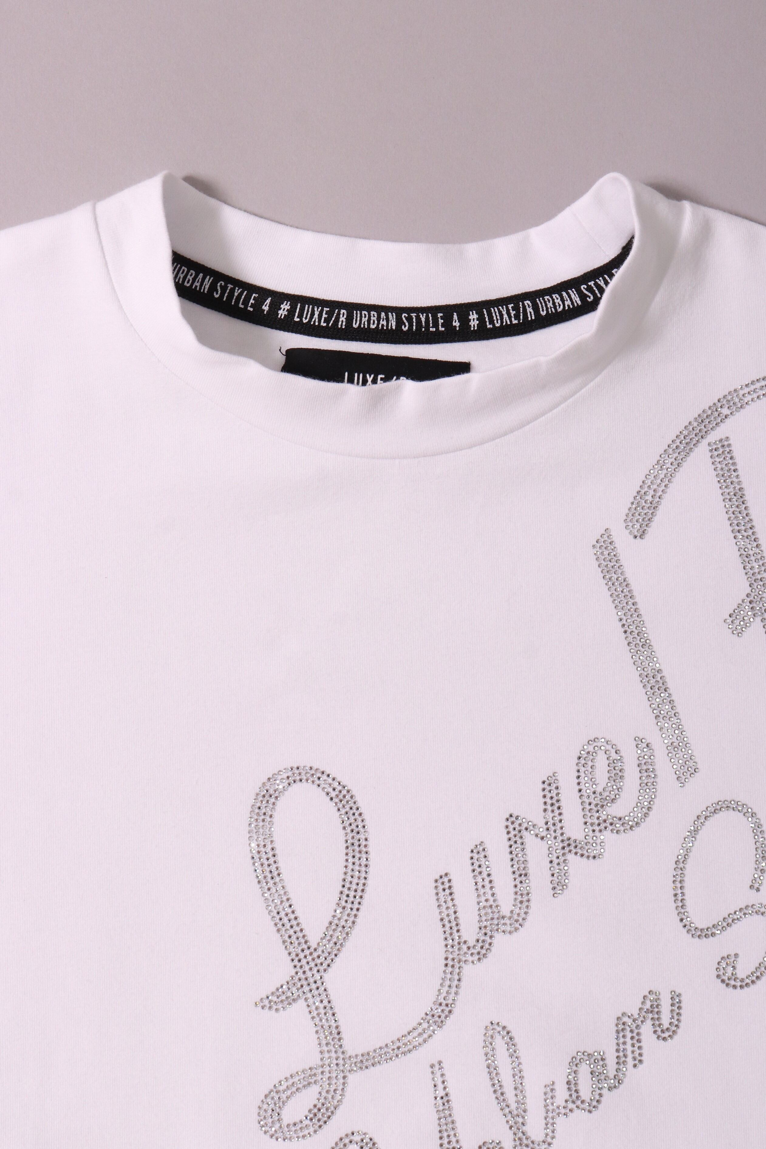 【LUXE/R】(45547) ストレッチベア天竺 ラインストーンロゴ ロングT