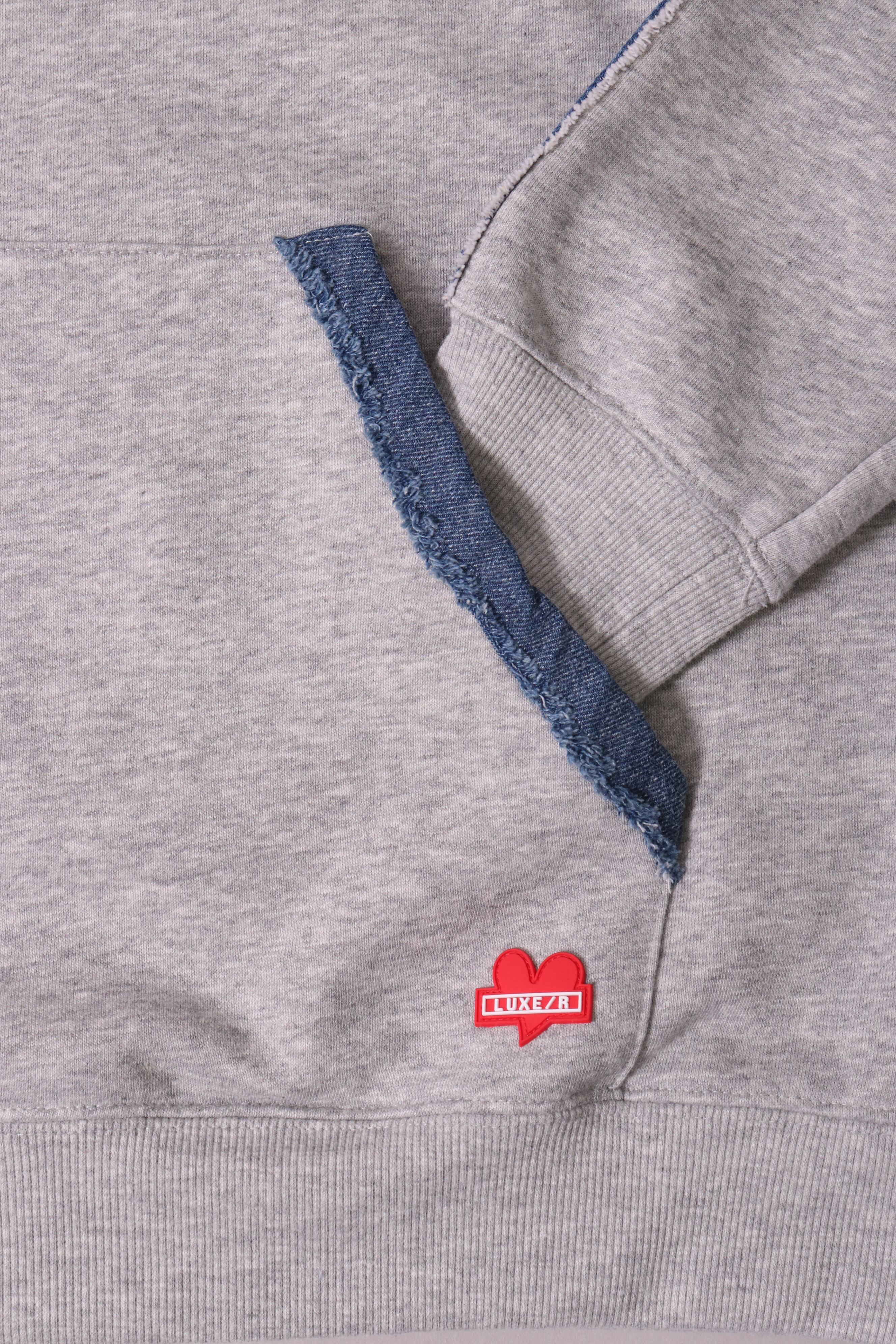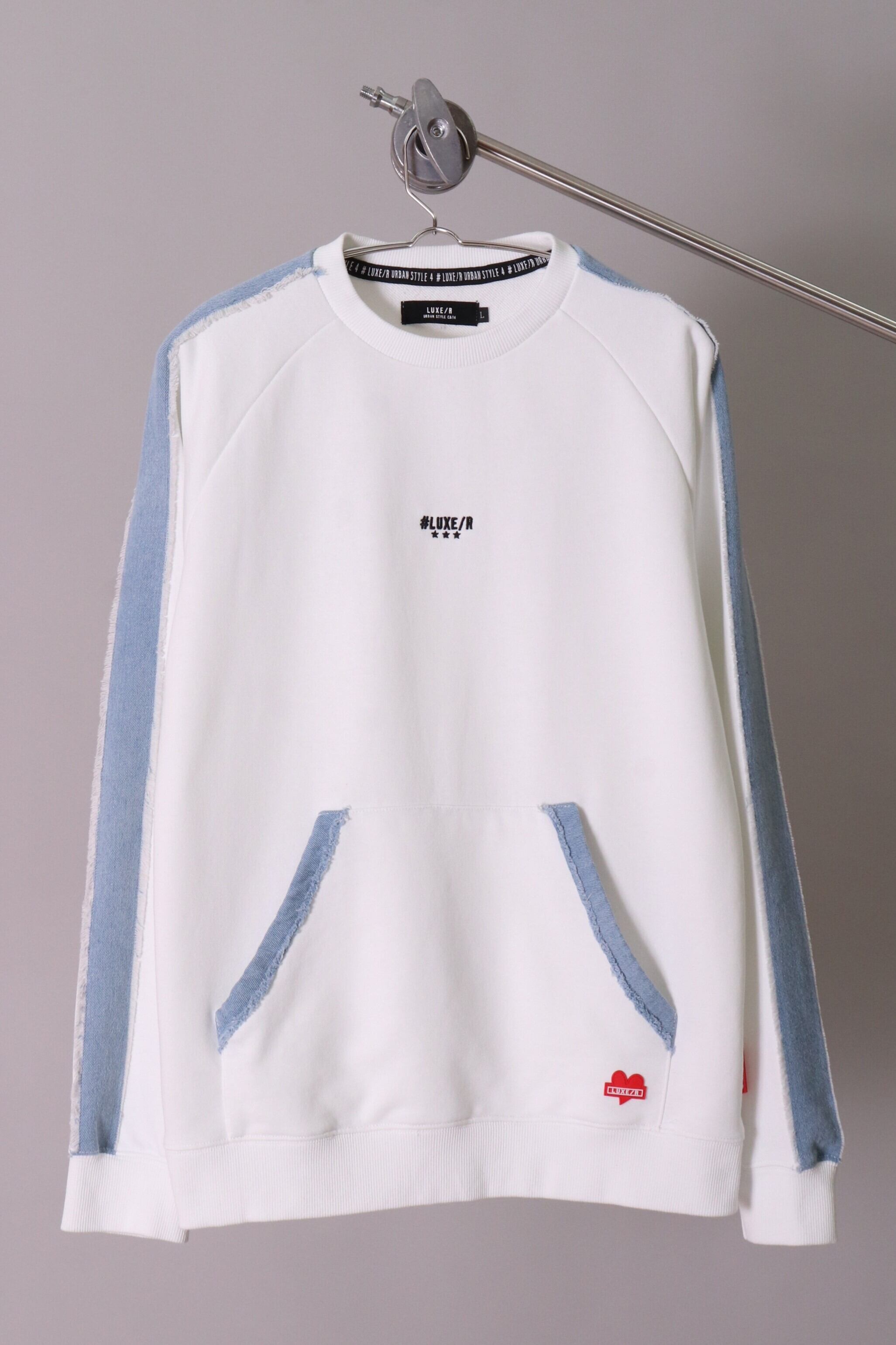 【LUXE/R(45556)デニム切り替え貼り付け裏毛スウェトクルー