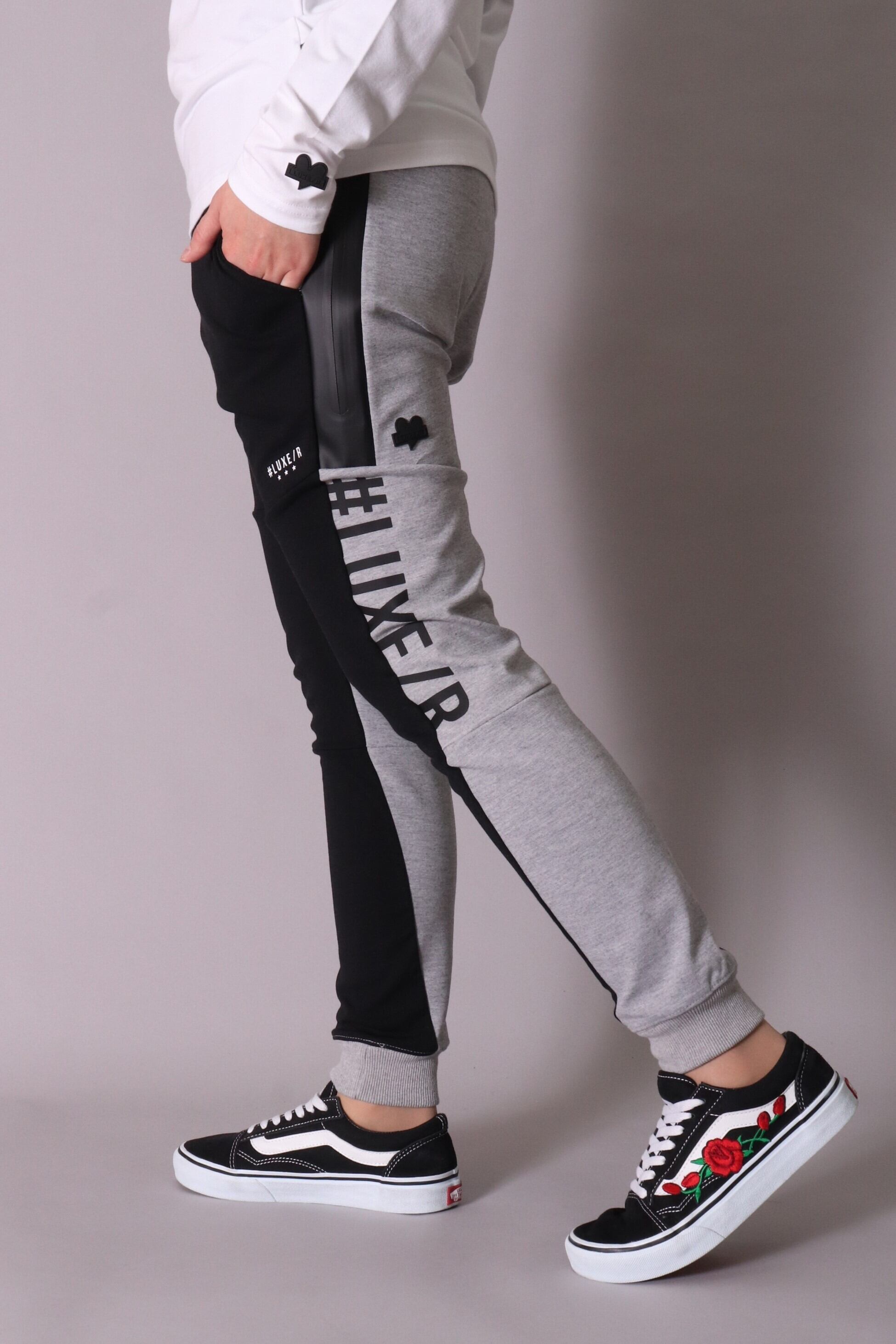 【LUXE/R】(45565)ストレッチポンチ生地 切り替えサイドロゴプリントロングパンツ