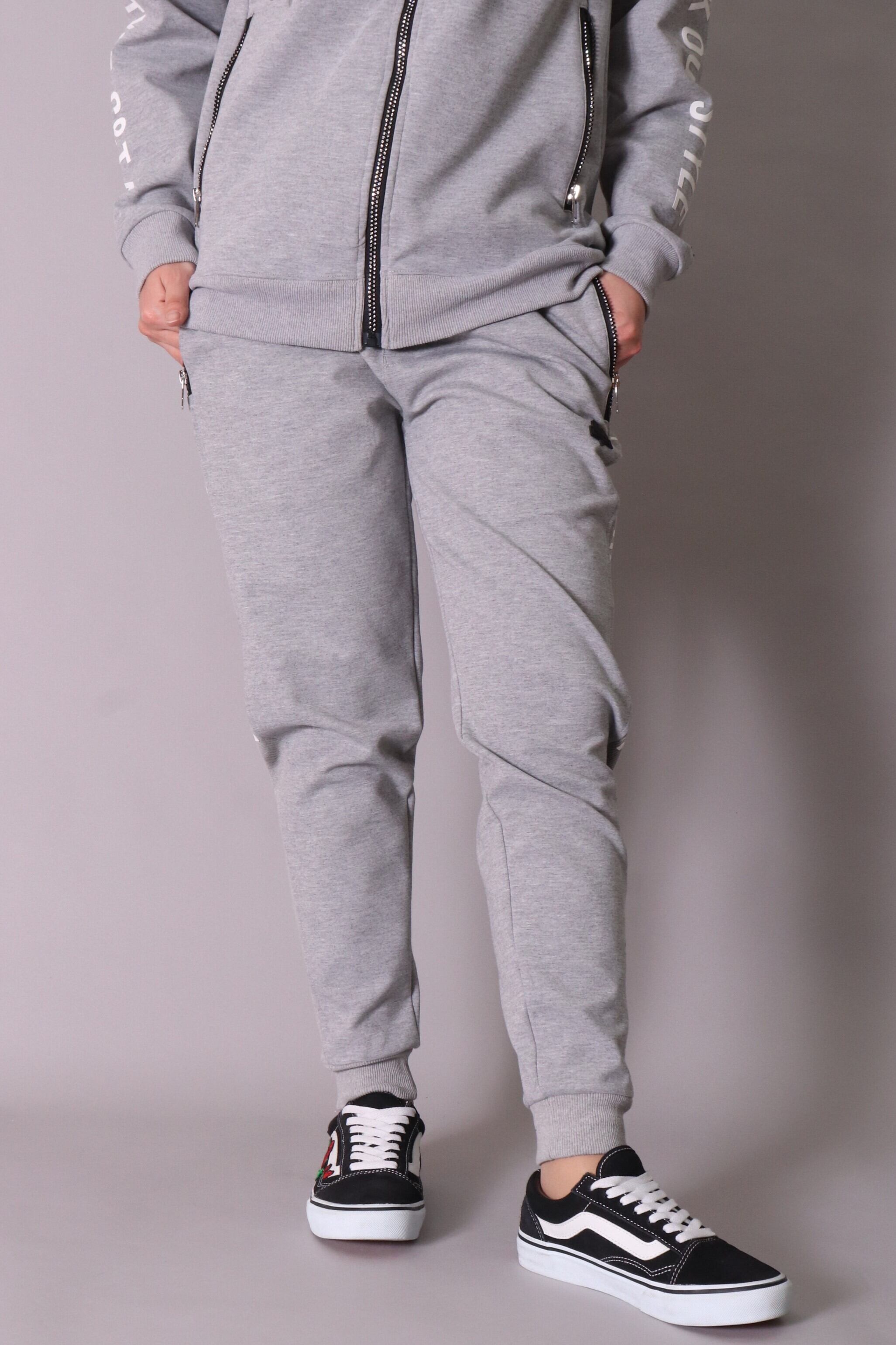 【LUXE/R】(45566)ストレッチポンチジャージ生地 切り替えラインストーンZIPパンツ