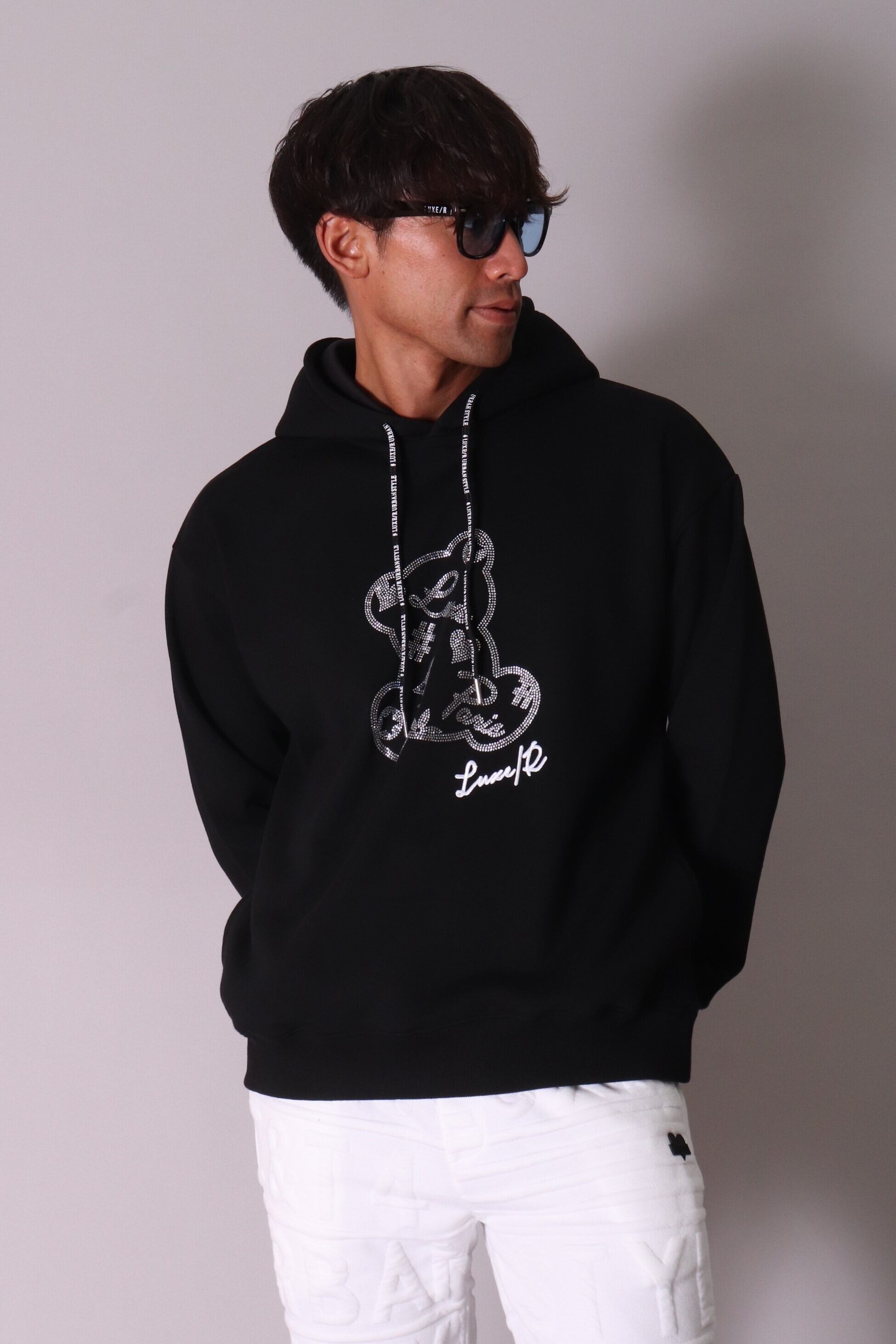 【LUXE/R】(45511)ストレッチポンチジャージ ラインストーンBEARプルパーカー