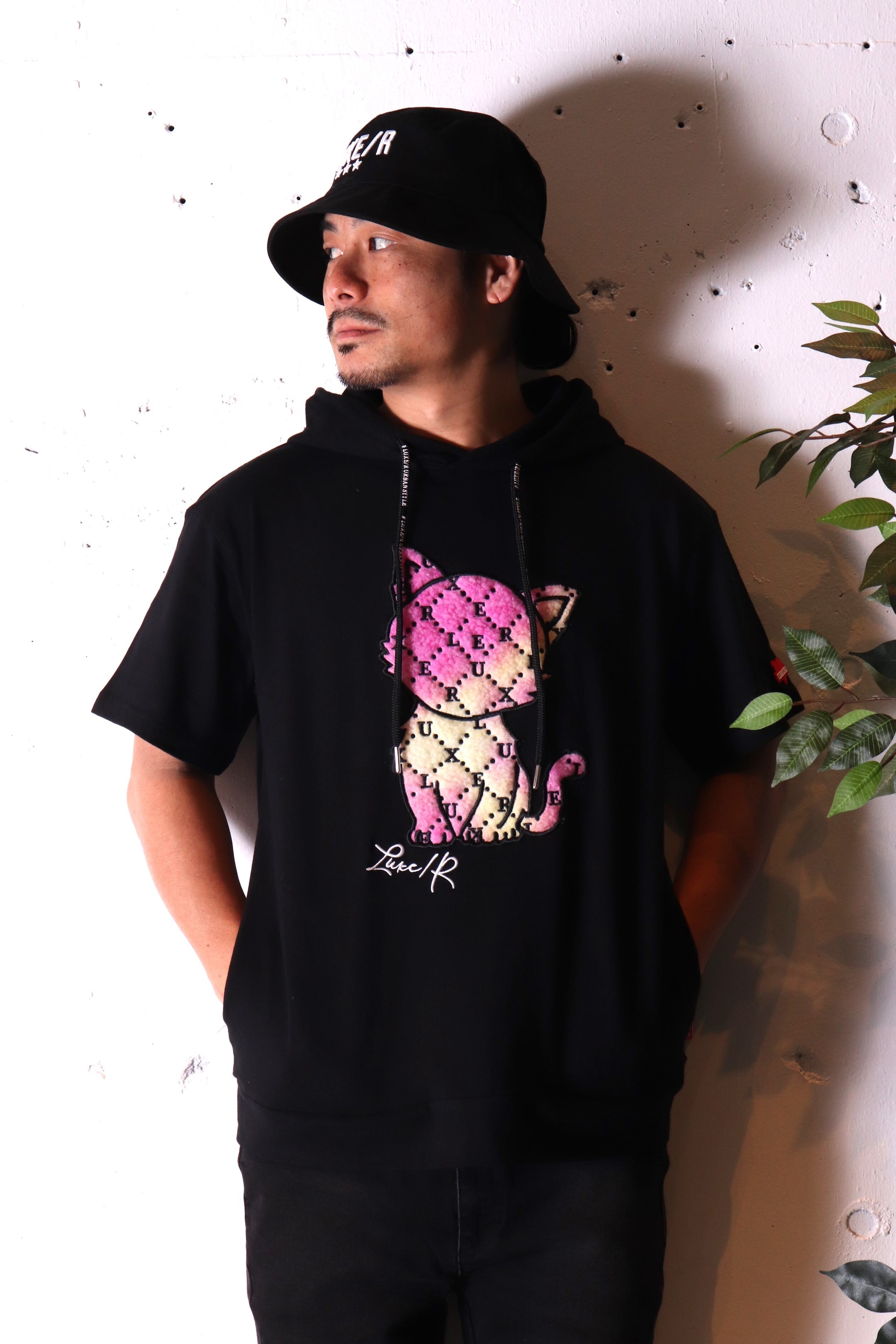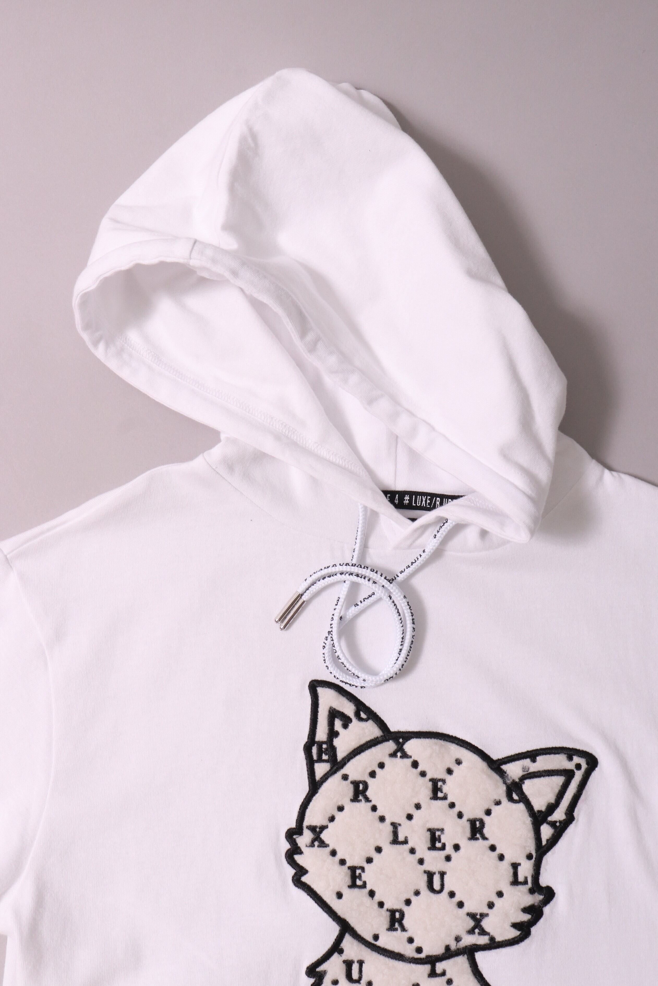 【LUXE/R】(ユニセックス商品)CAT柄 ボア貼り付けプルパーカー(45623)