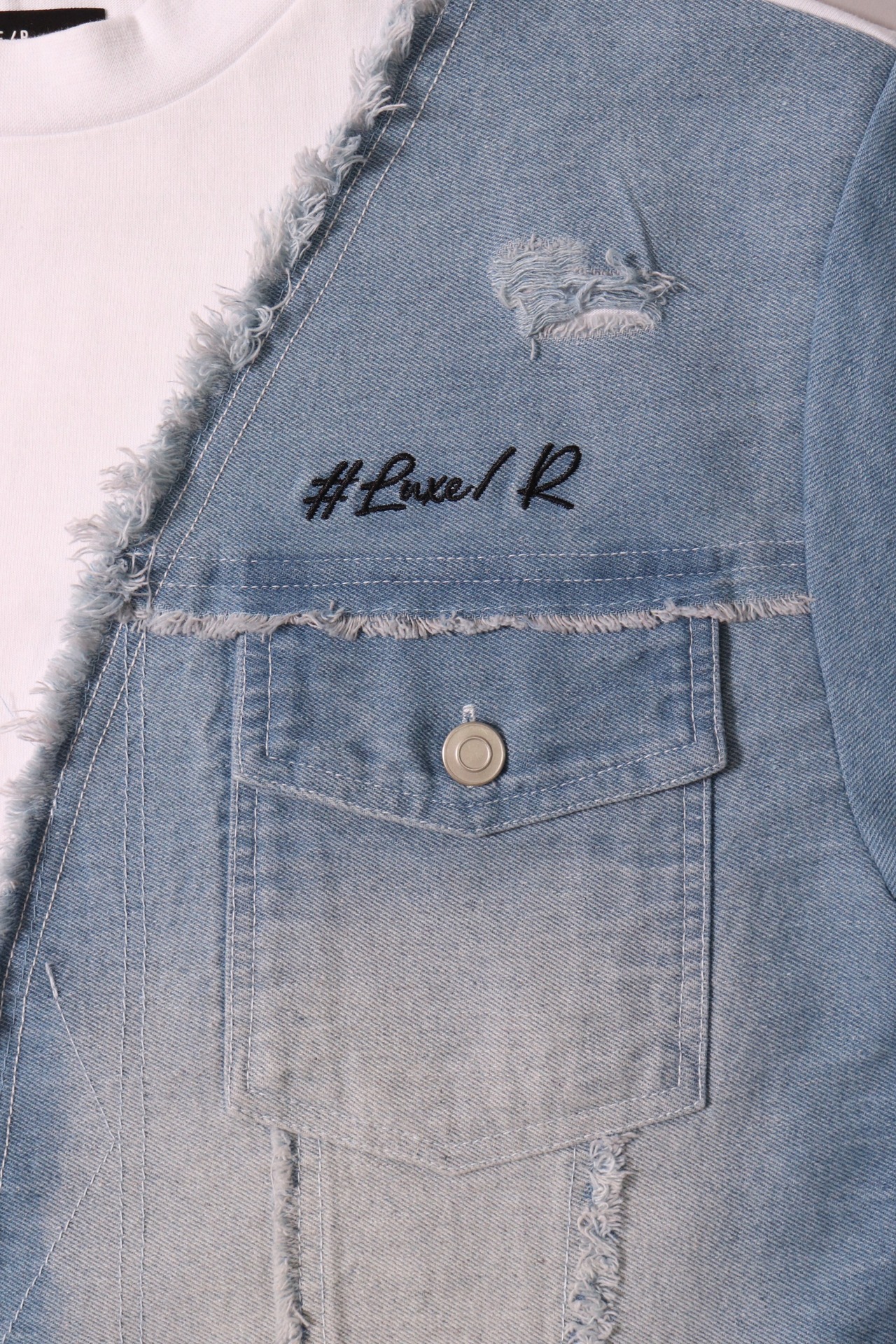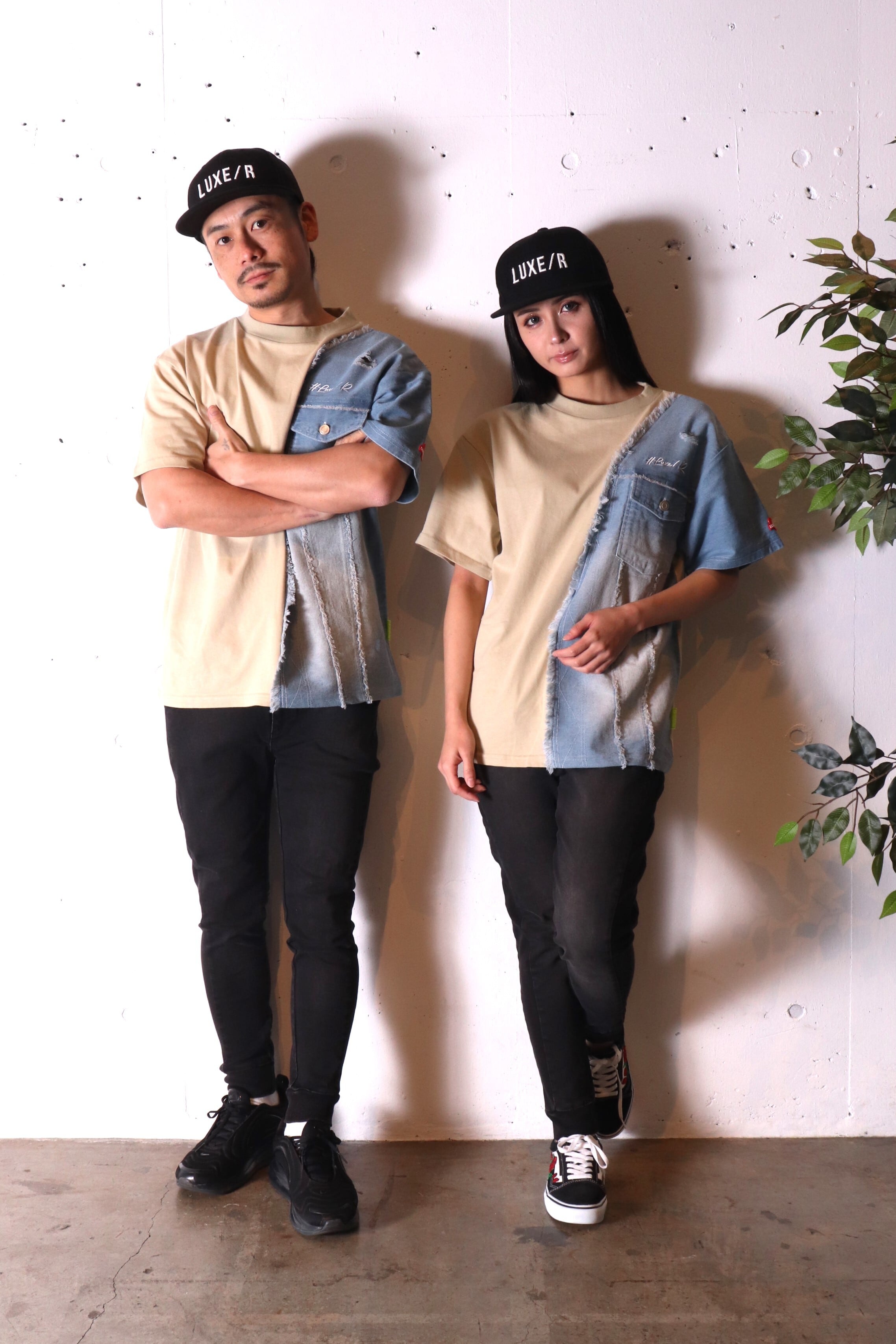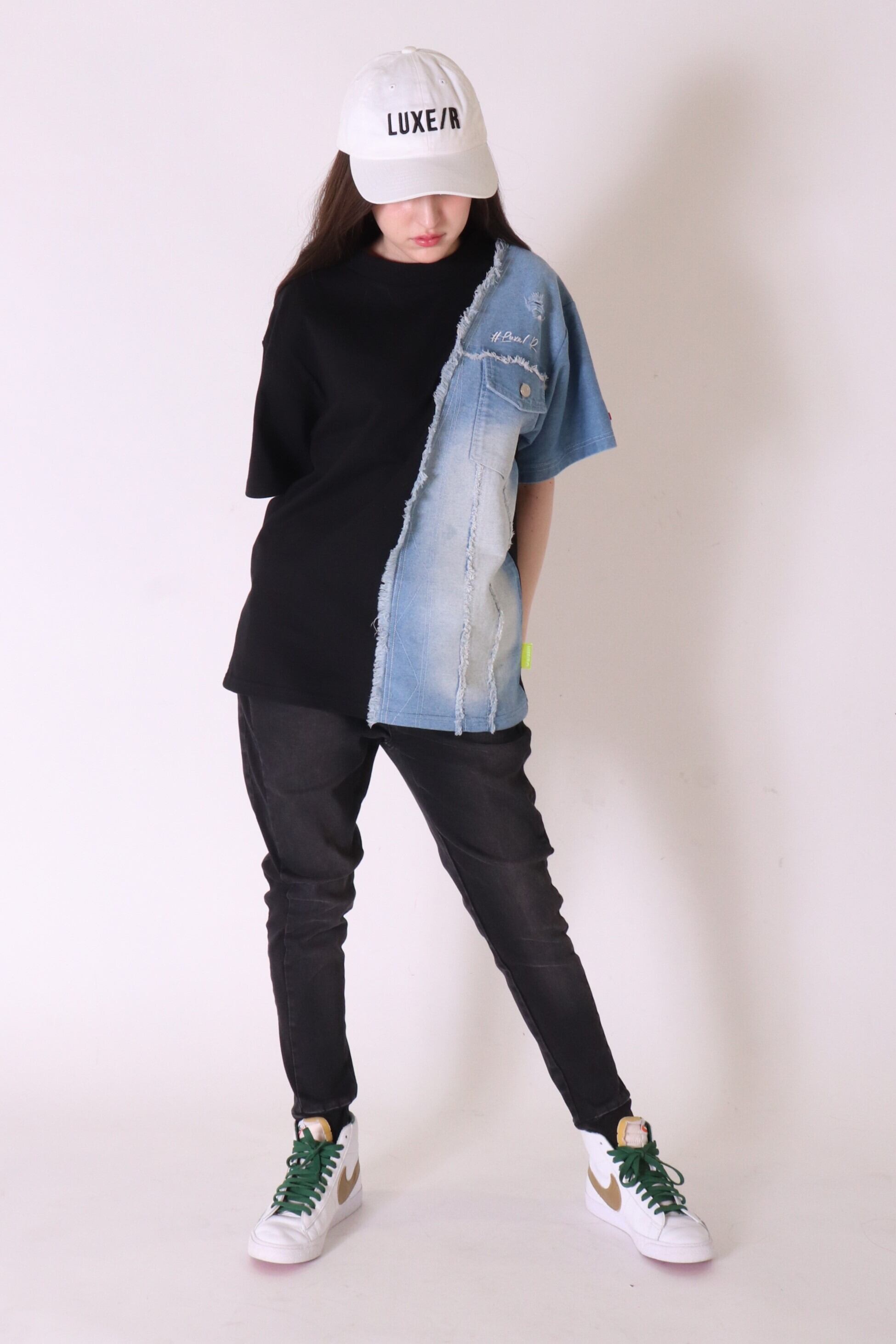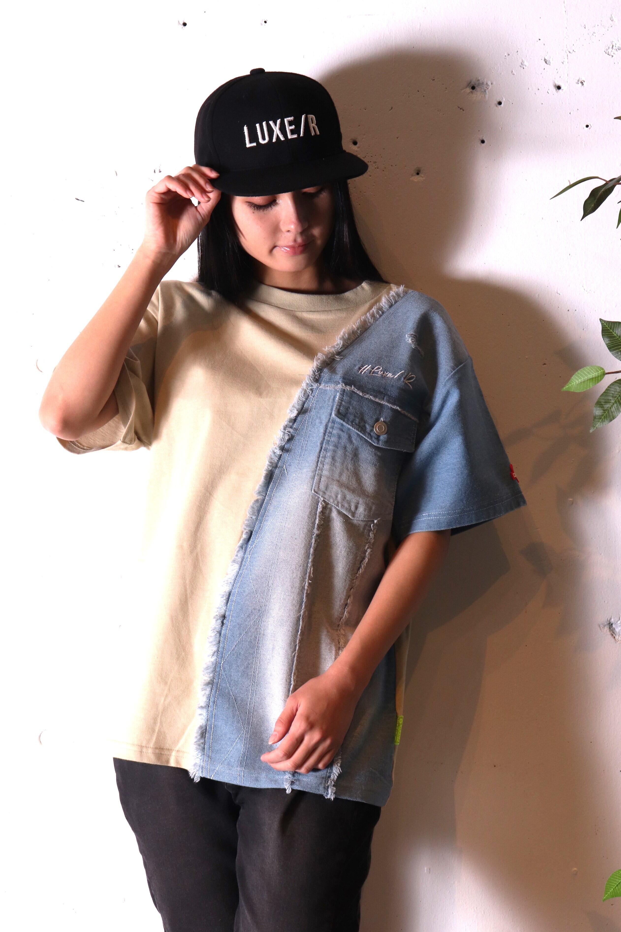 【LUXE/R】(ユニセックス商品)デニム切り替え天竺貼り付けTシャツ(45631)