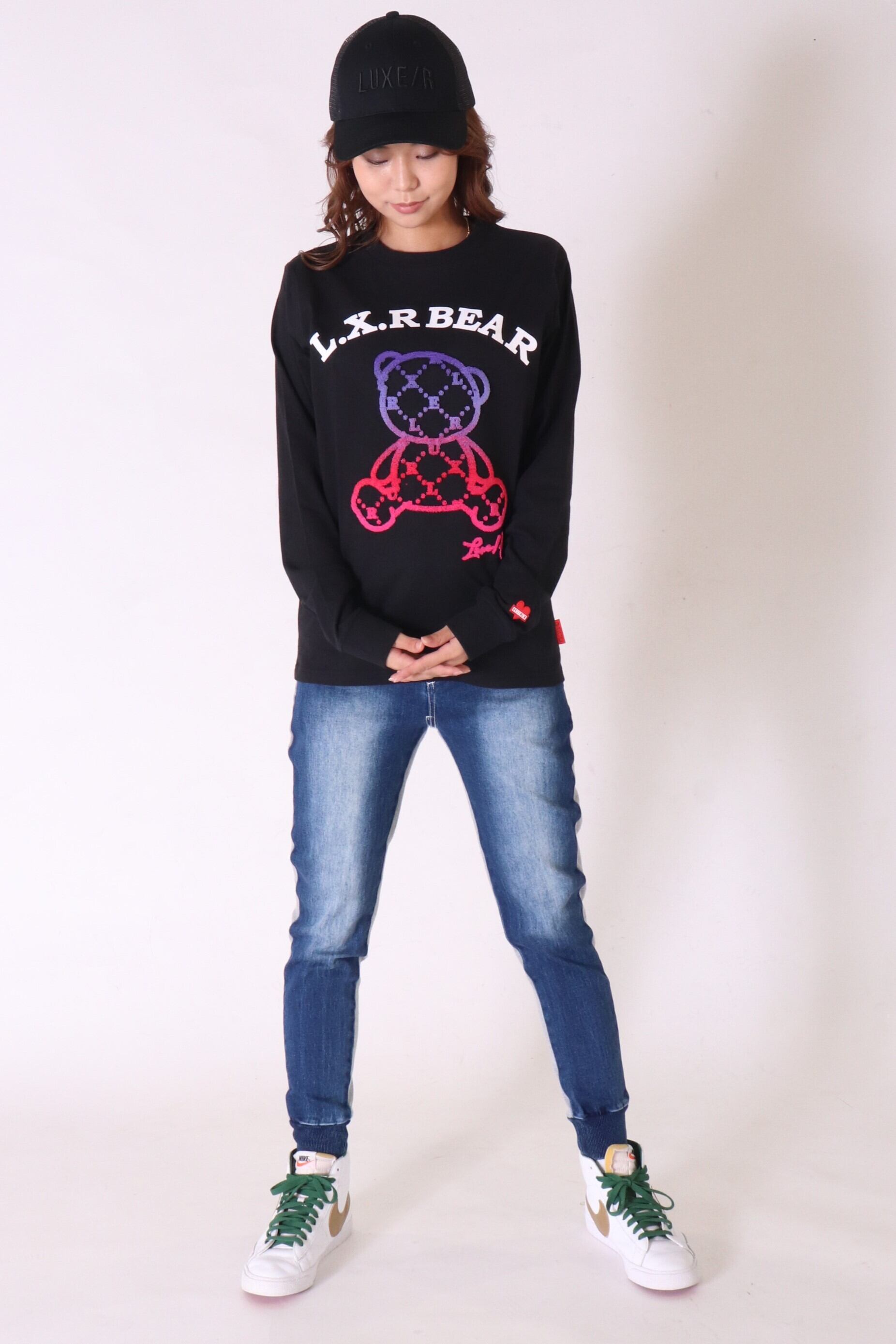 【LUXE/R】(45796)ブラシ刺繡ベアー柄 天竺Tシャツ