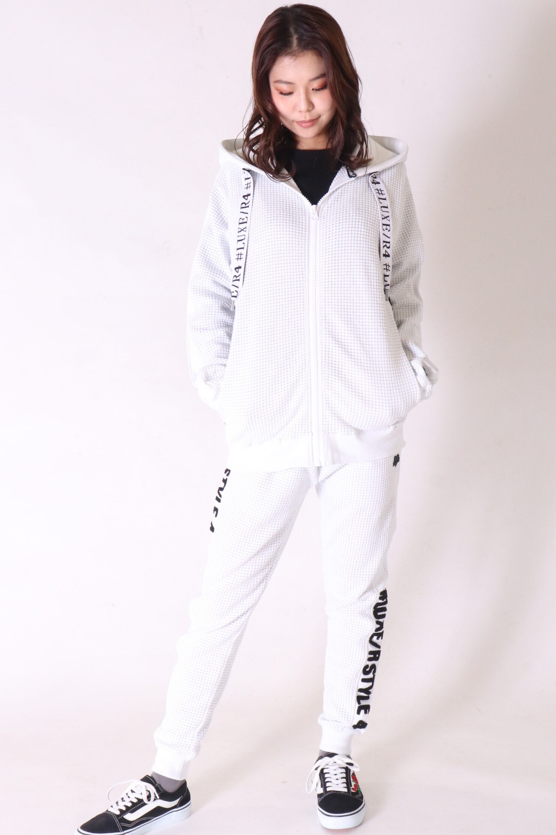 今流行りのワッフル素材ジャージに似ている柔らかい柔軟な素材です!脇にはロゴジャガードサガラ刺繡してあります、シックでスポーティな商品です。ジョギング、サッカー、ジムなどあらゆるスポーツに最適です。SET/UPでもご利用頂けます。