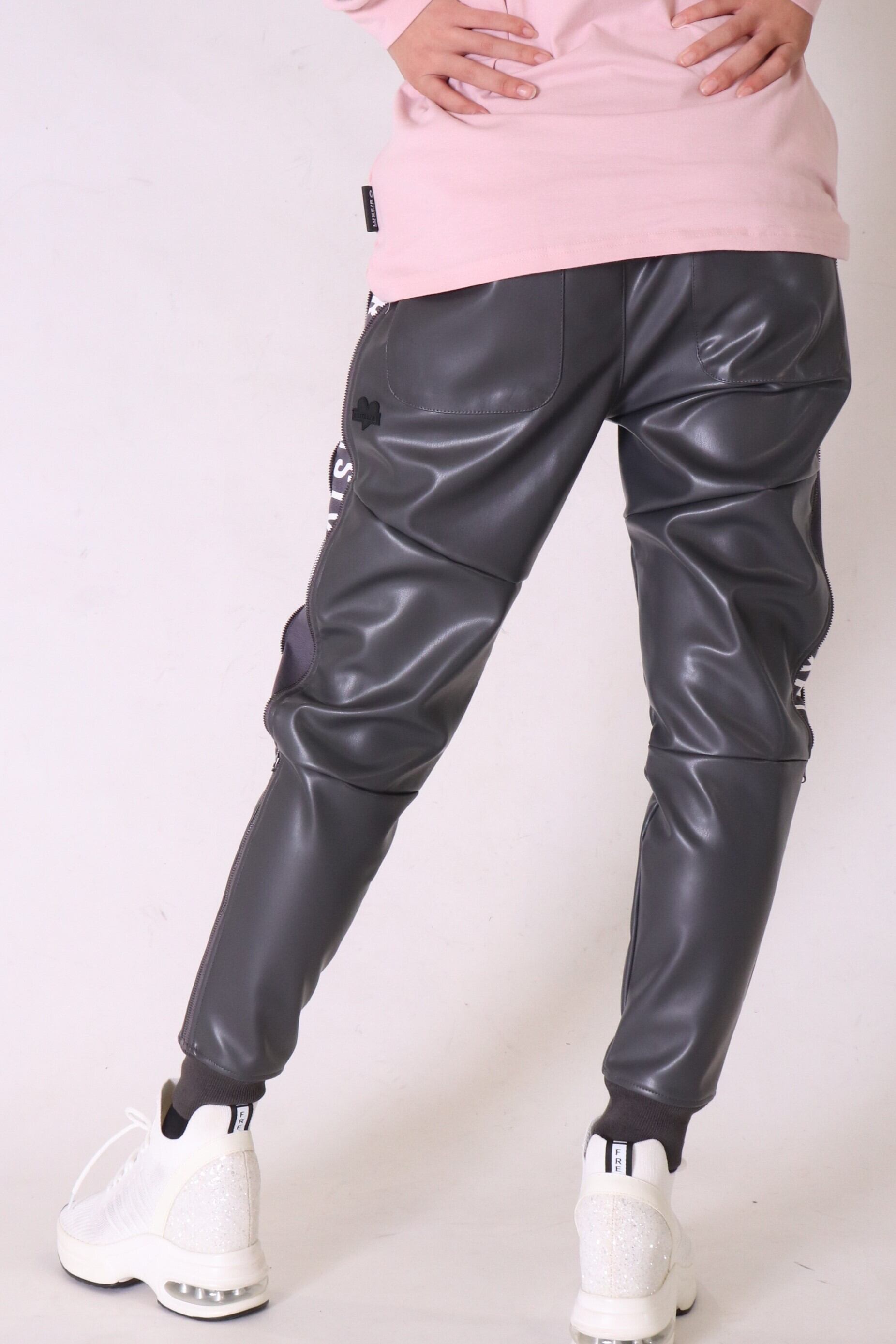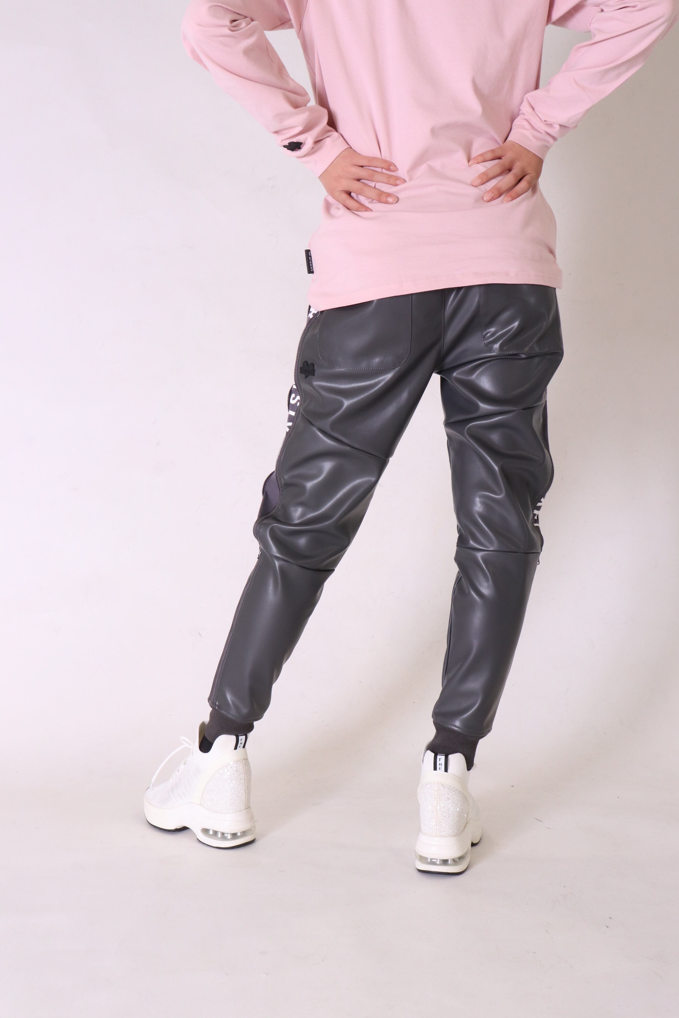 PU合皮ストレッチが効いた柔軟な素材です。カジュアルパンツはユニセックスで着れます!シックでかわいい商品です!やや細めです!サイドにはZIPUPがあり、あければロゴが現れます!