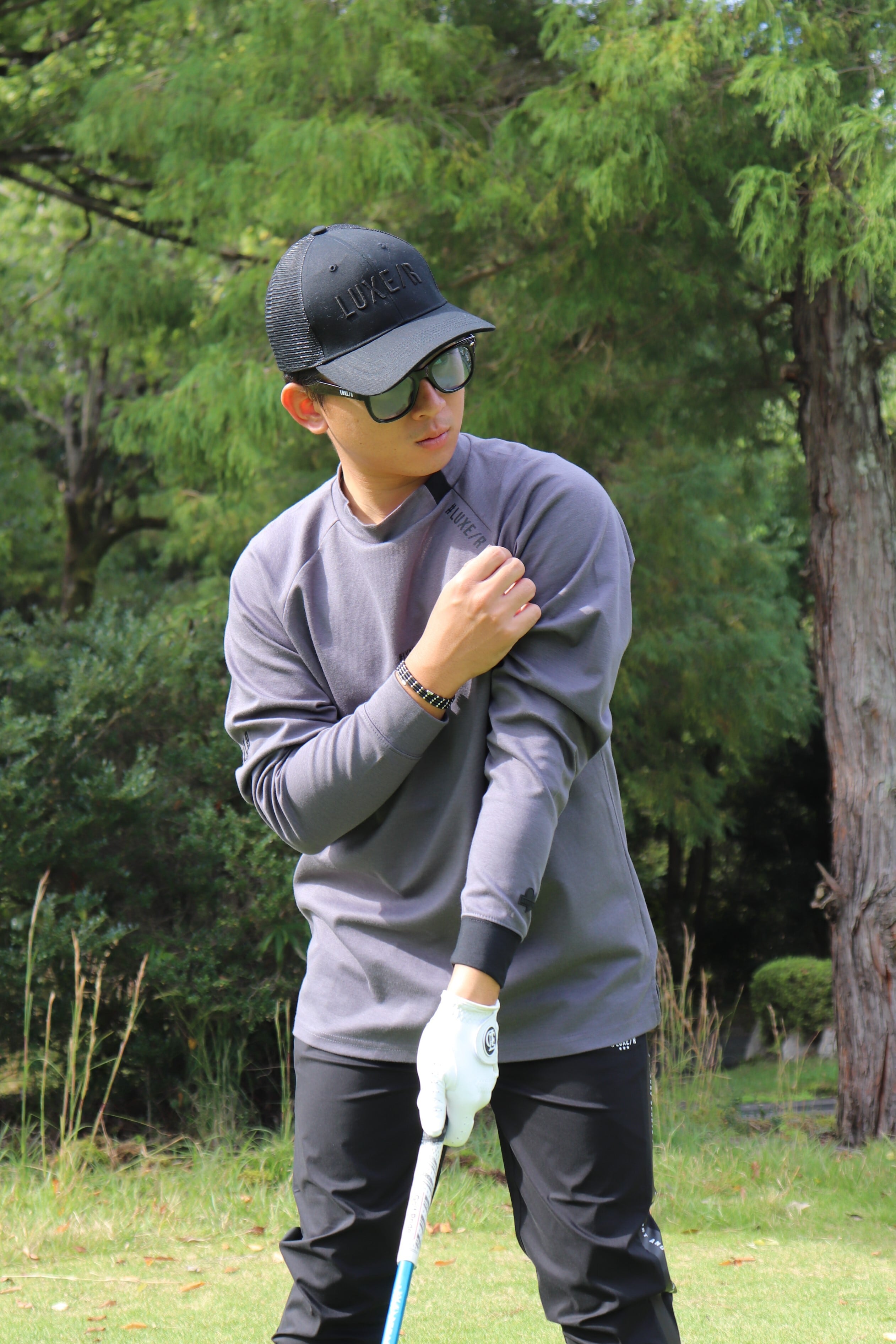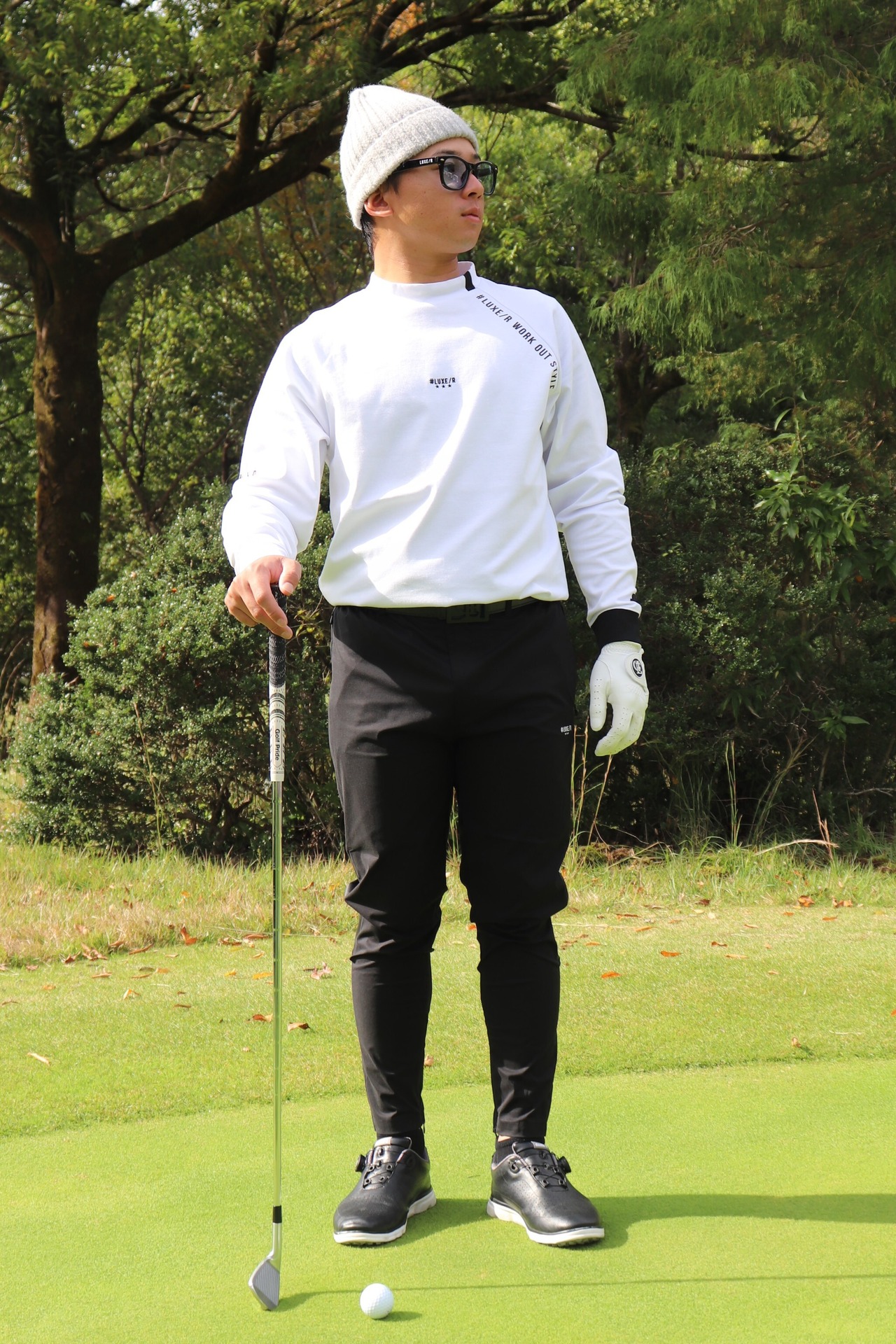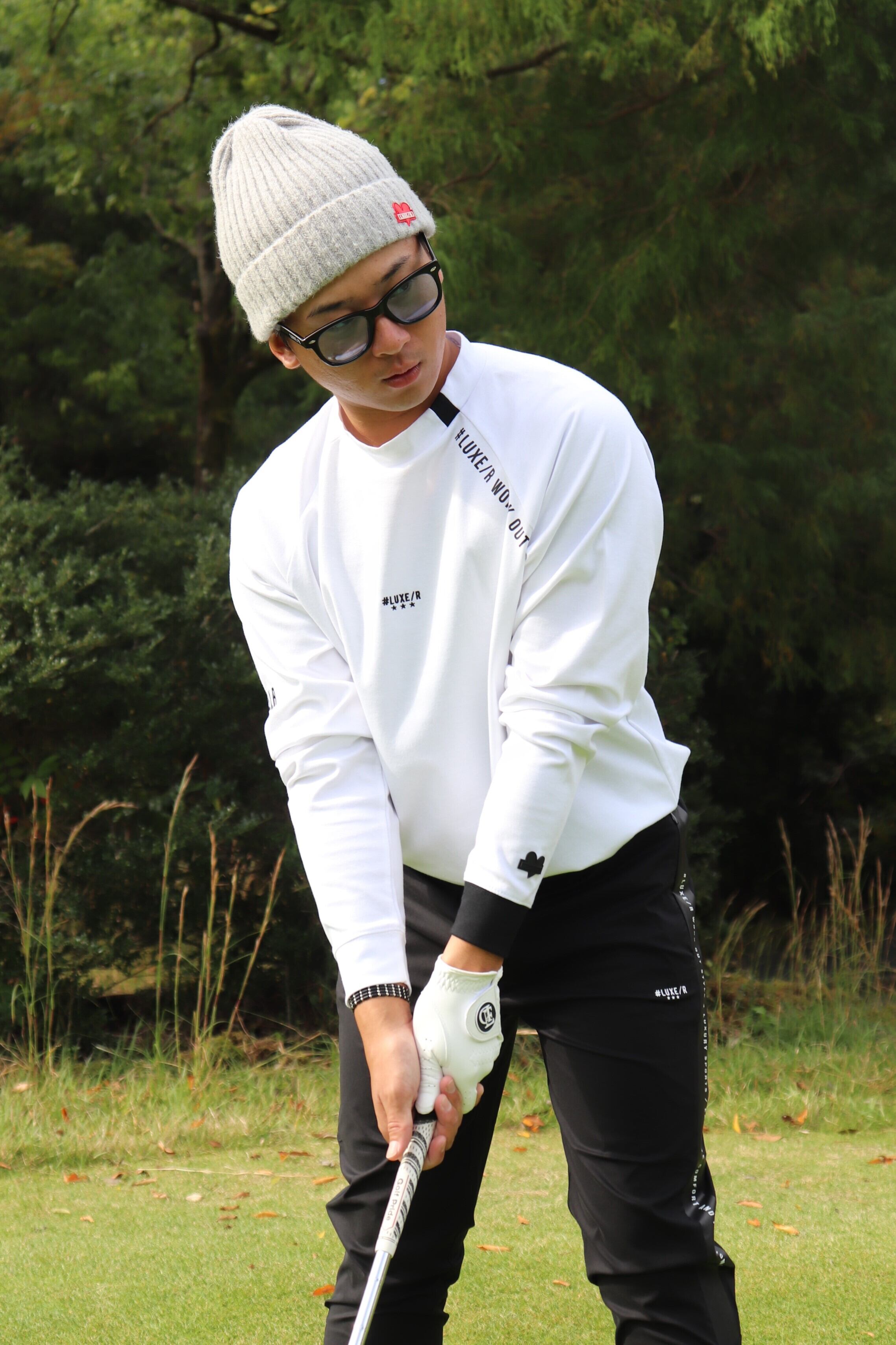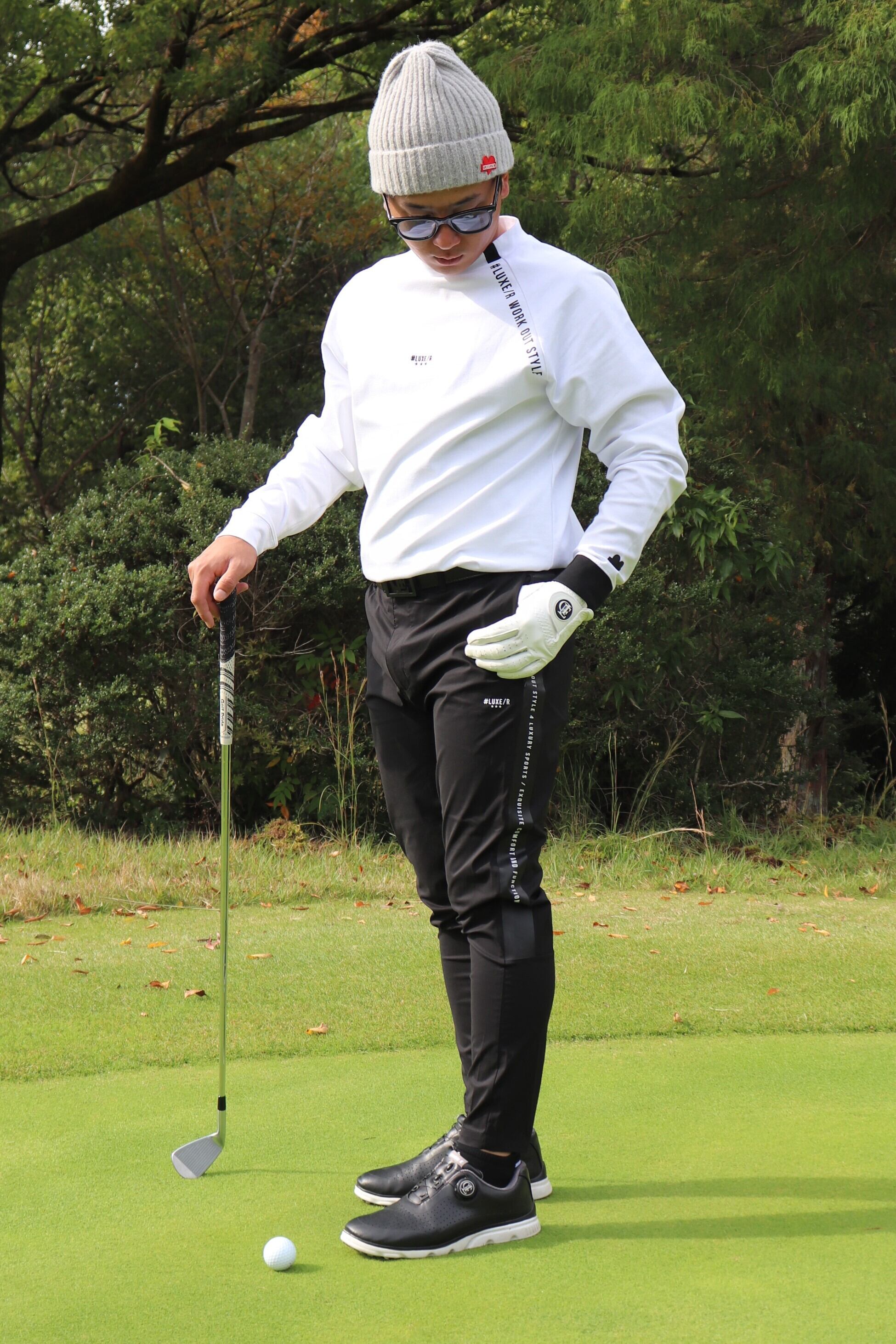 襟はタートルネックでGOLFにも着用頂けます。LUXERな素材感にあっさりプリントでセレブ感満載ですね!今流行りのデザインです。