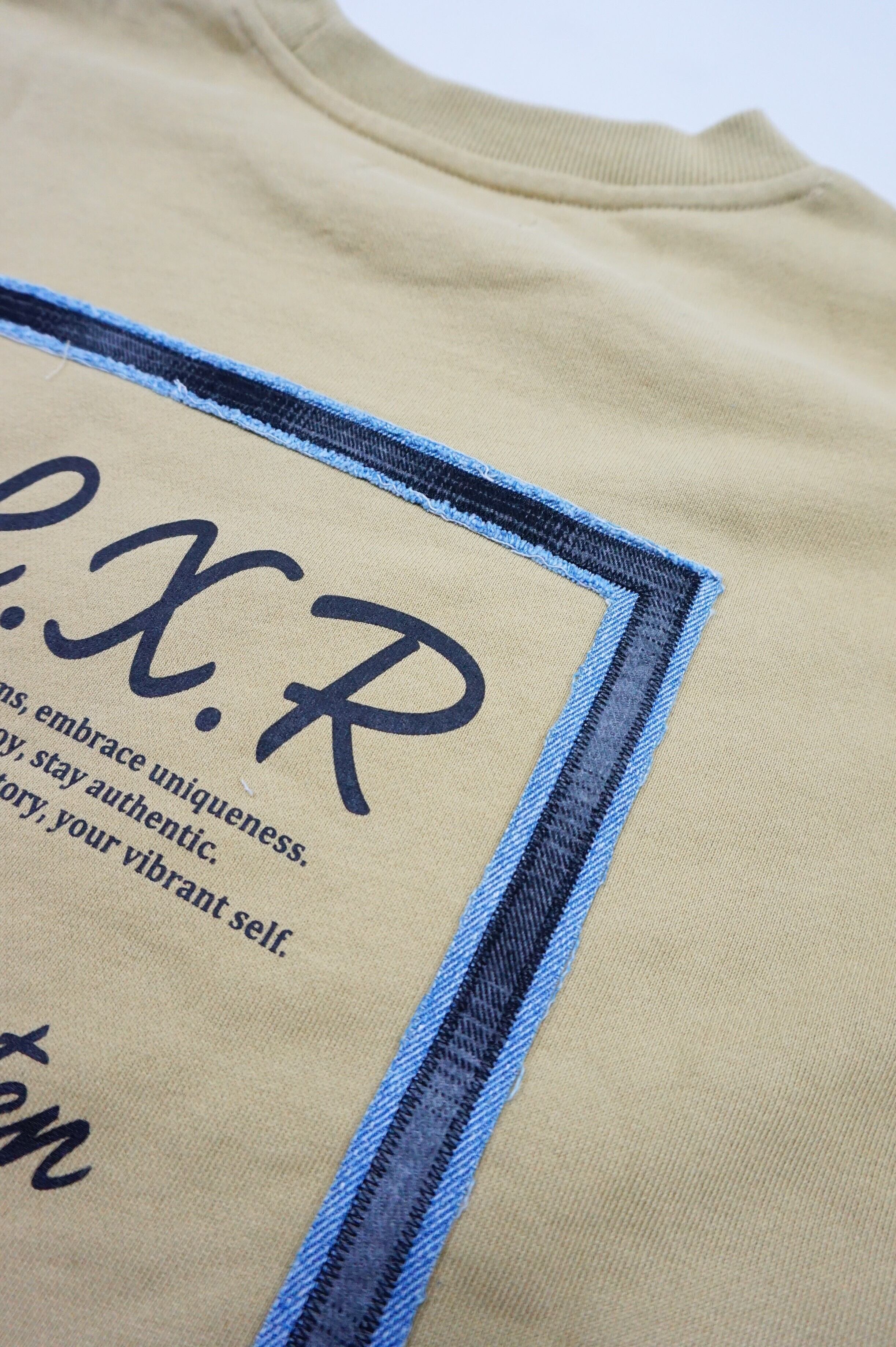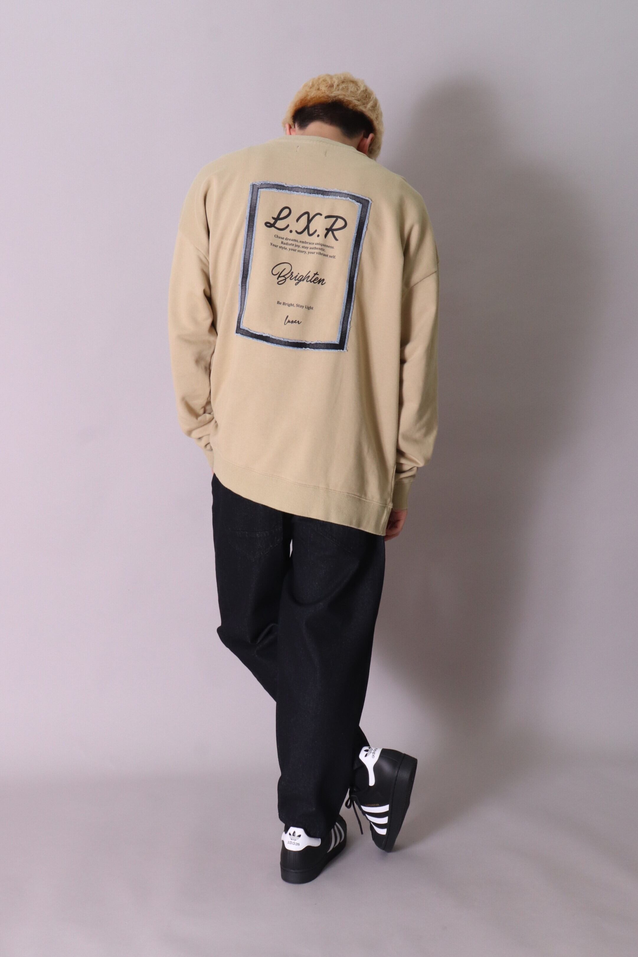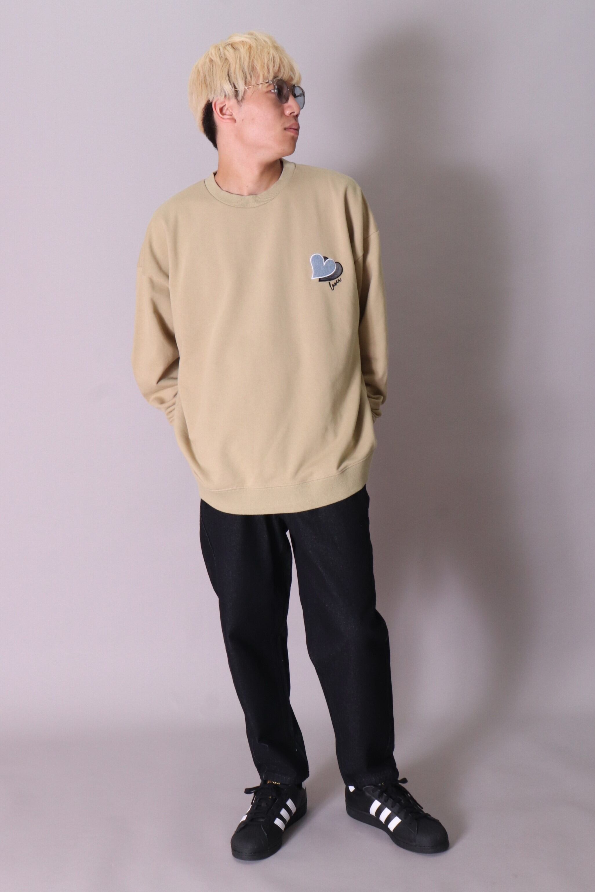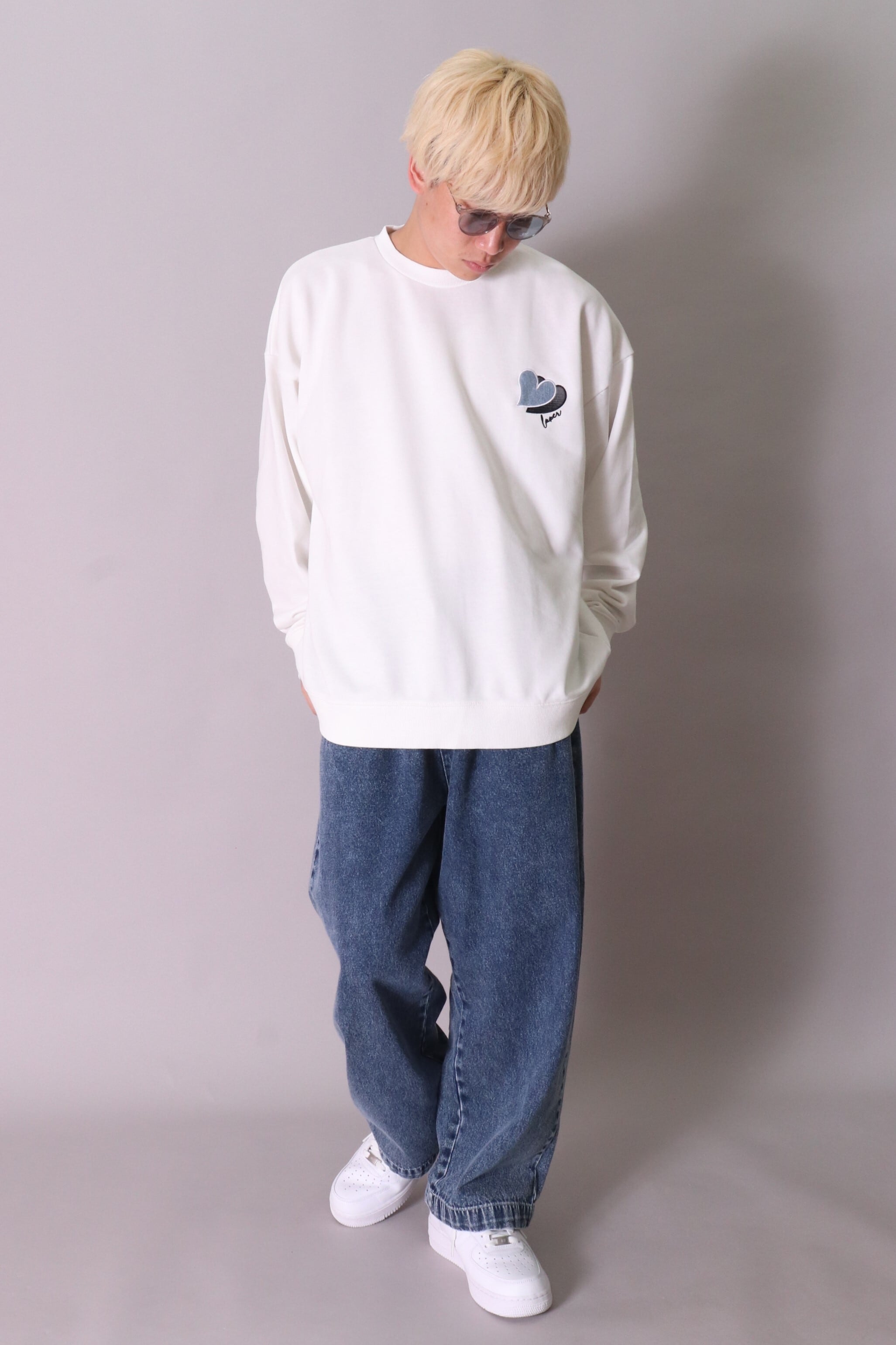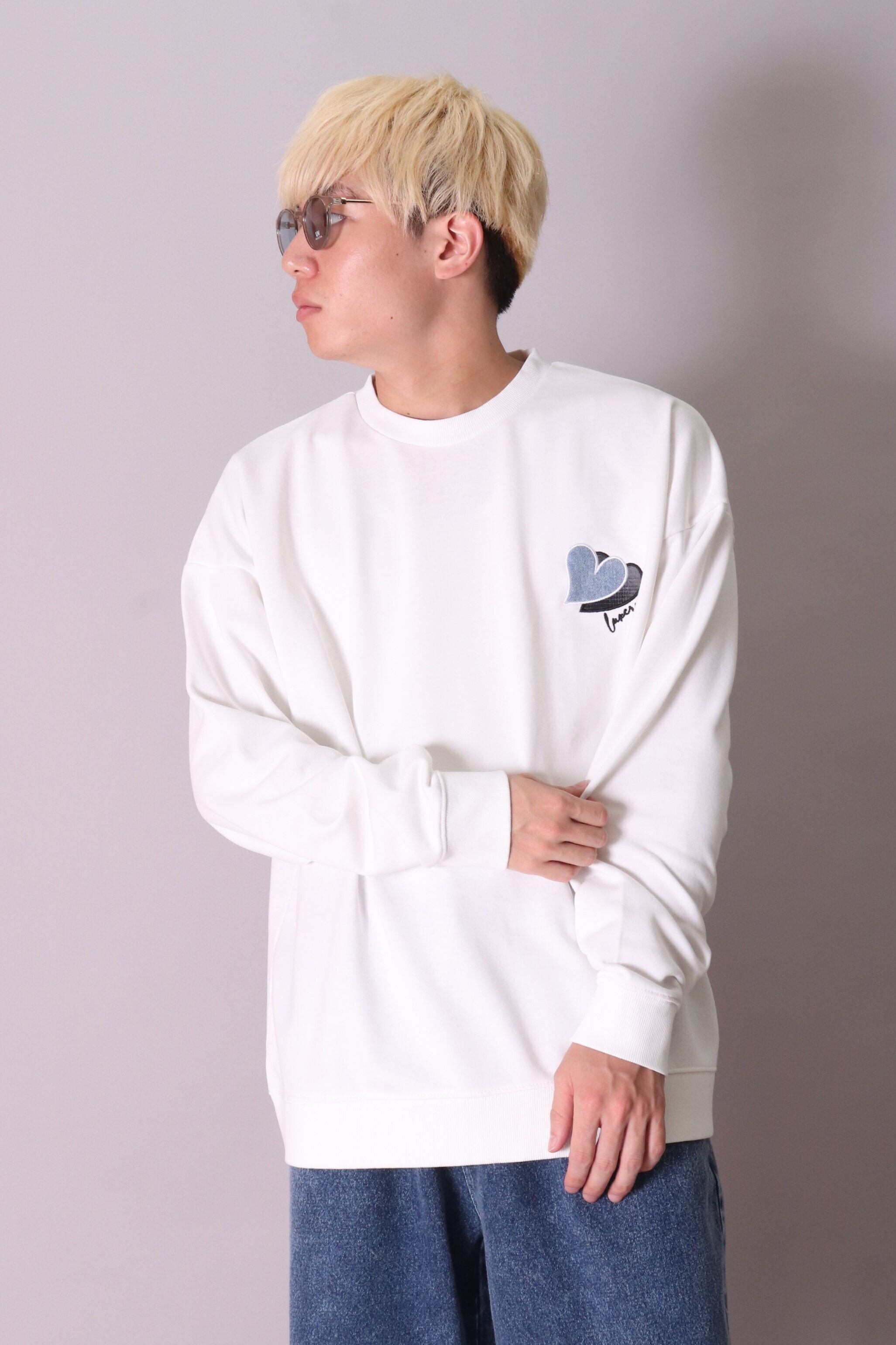 【LUXE/R】(45826)デニム柄貼り付け 裏毛スウェットクルー