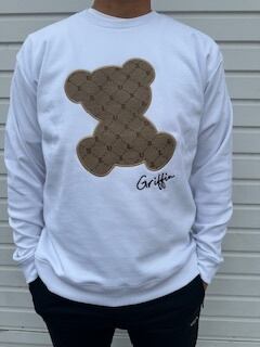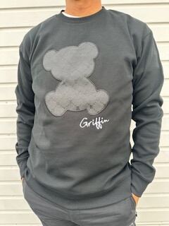 ポリスウェットダンボール生地にBEAR、モノグラム柄を切り替えた!新しいアイテムです、、ハイブランドでよく扱われる。布帛貼り付けという立体的になるような貼り付けという技法で大人スウェットにしました!やや細身な感じです!裏返してネットに入れて優しく洗濯して下さいね!