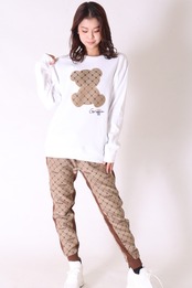 【LUXE/R】(45867)スウェットポリ生地 胸切り替えBEAR ロゴモノグラフ柄