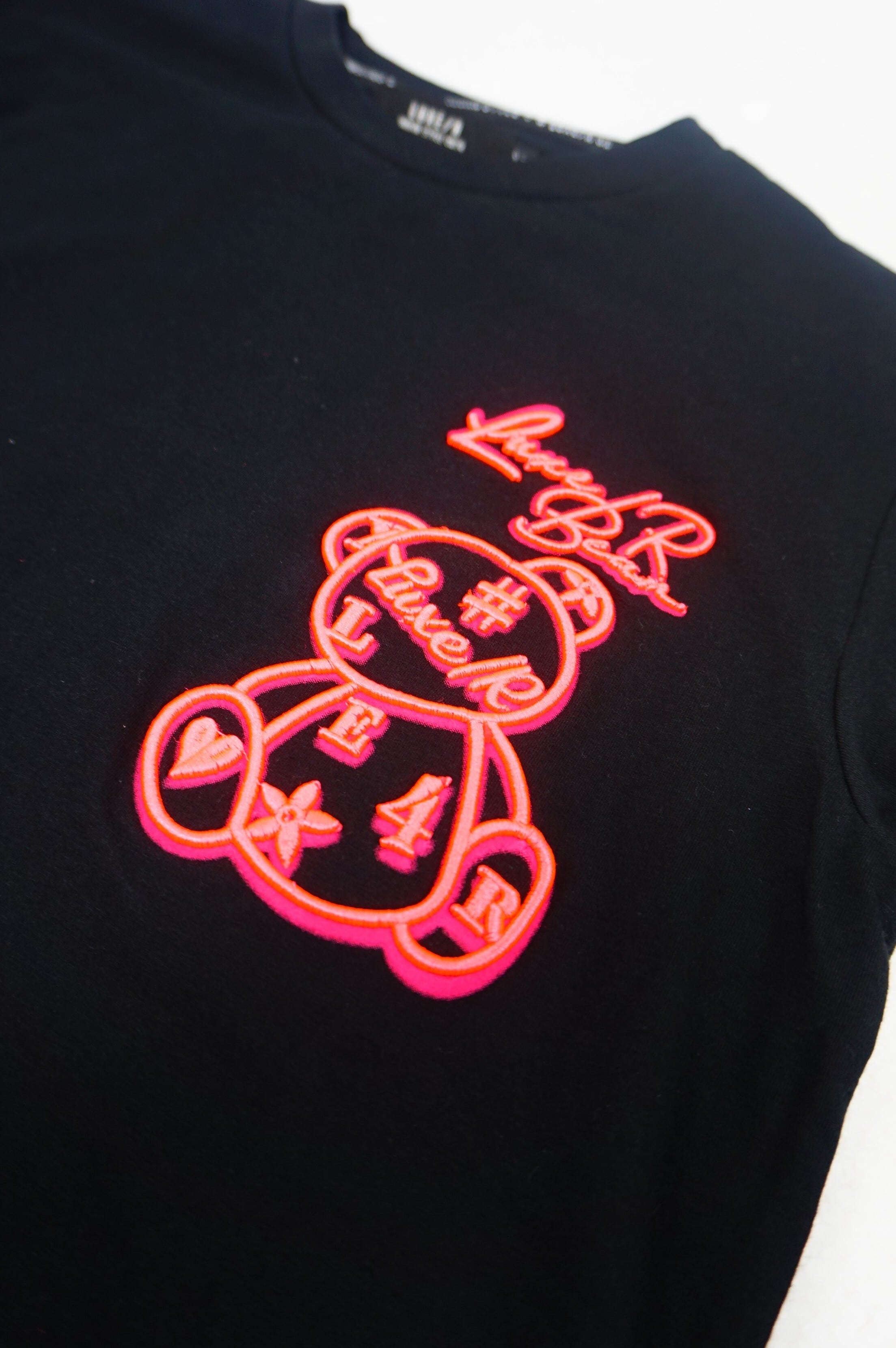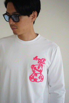 ロゴ柄を、今回はコード刺繡で貼り付けという立体的になるような貼り付けという技法で大人Tシャツにしました!シックでワンポイントが可愛いTシャツです!やや細身な感じです!裏返してネットに入れて優しく洗濯して下さいね!