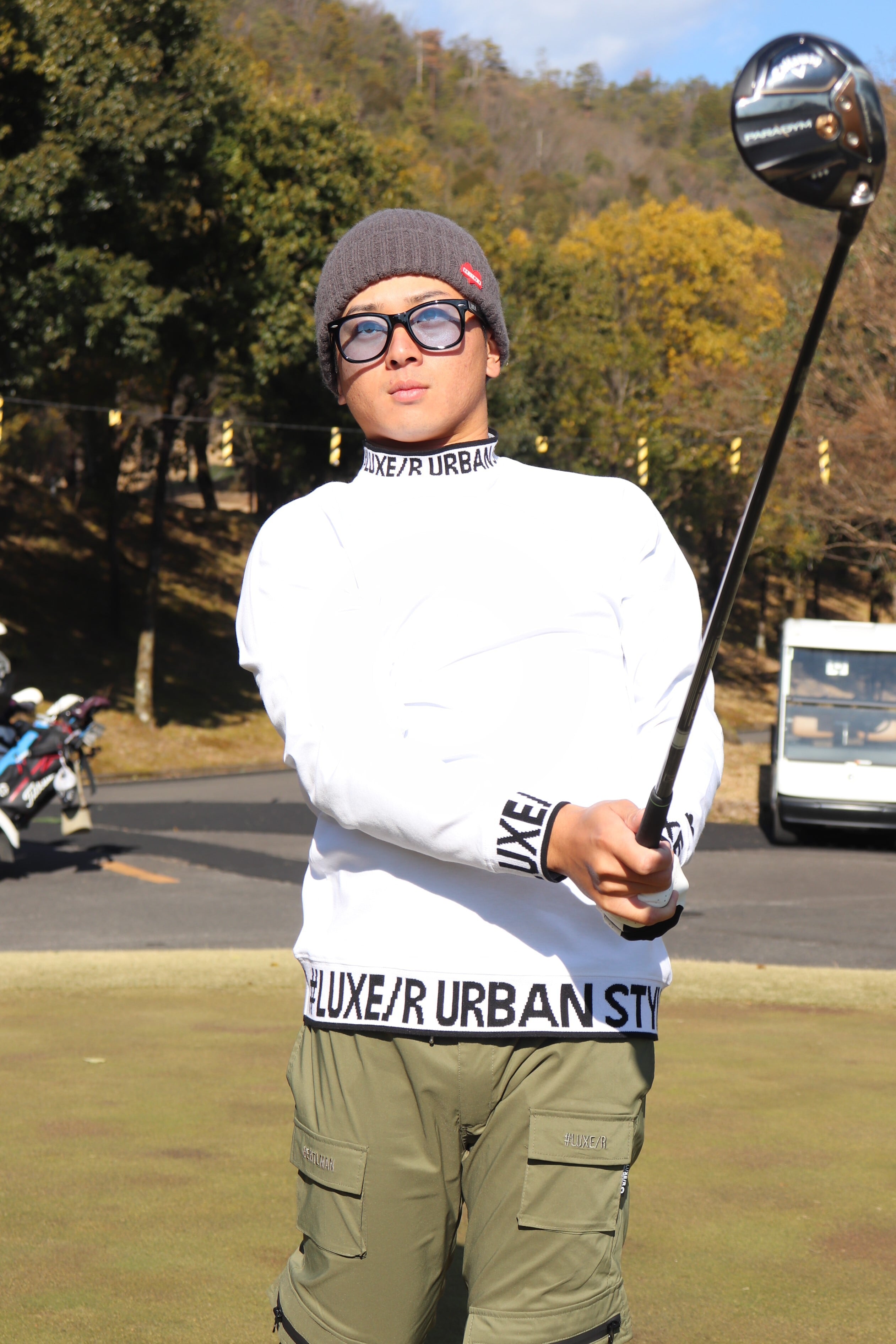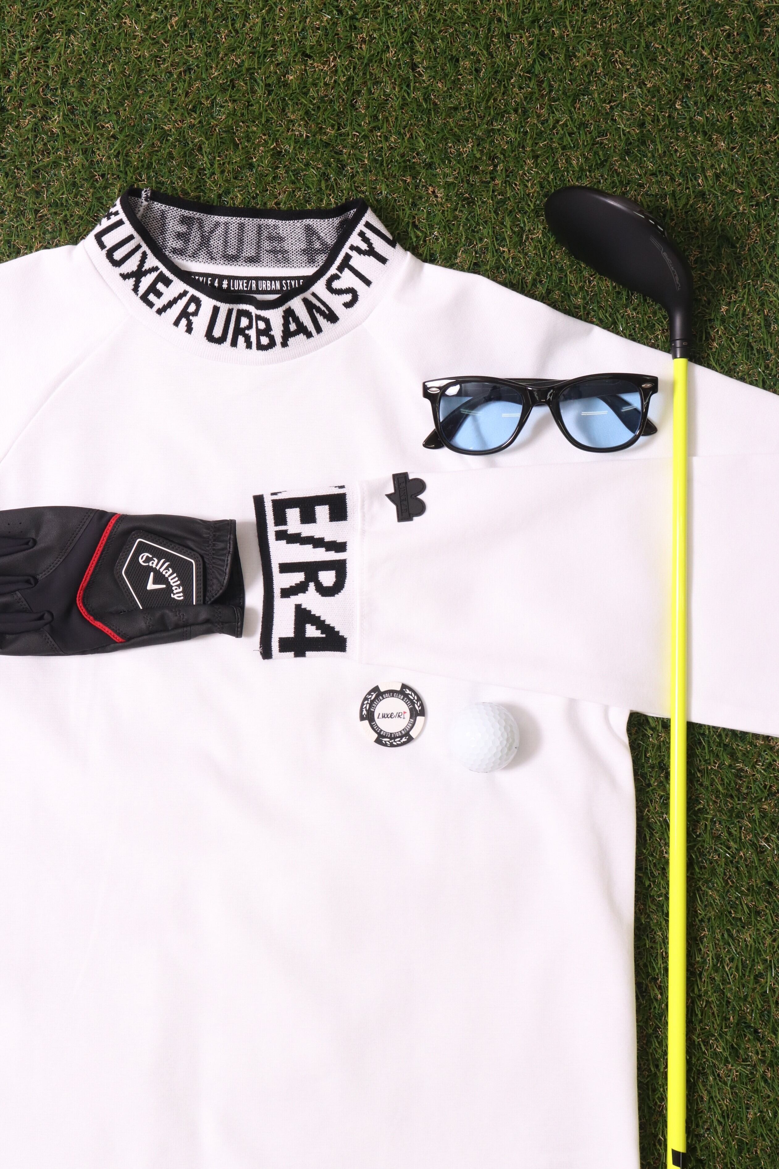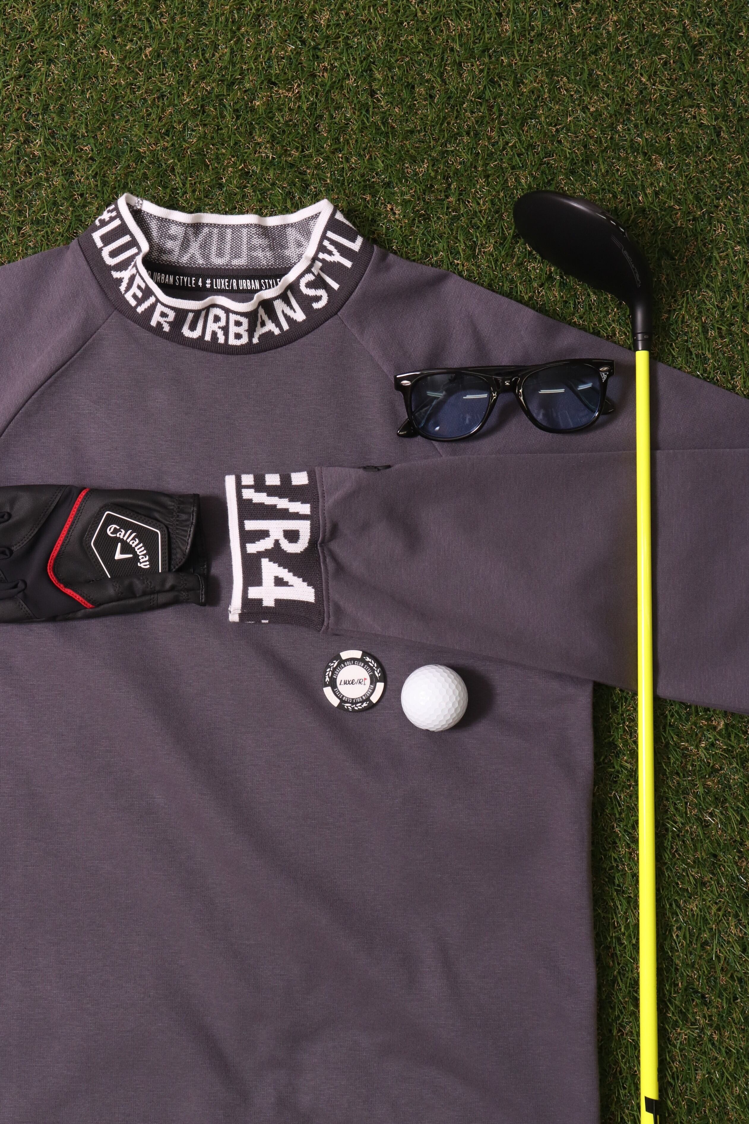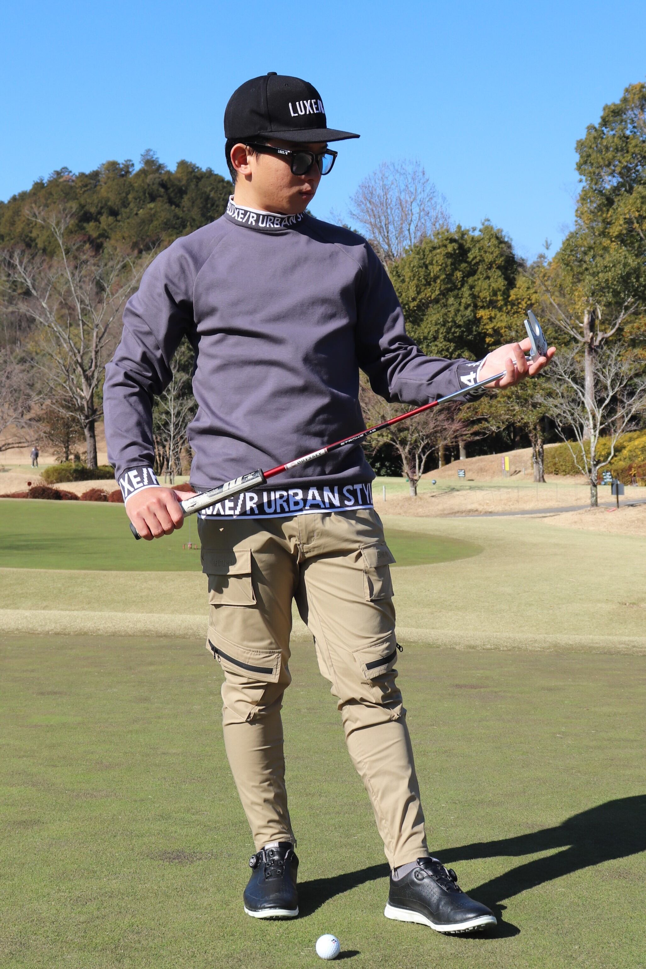 襟はモックネックでGOLFにも着用頂けます。LUXERな素材感にあっさりプリントでセレブ感満載ですね!今流行りのデザインです。