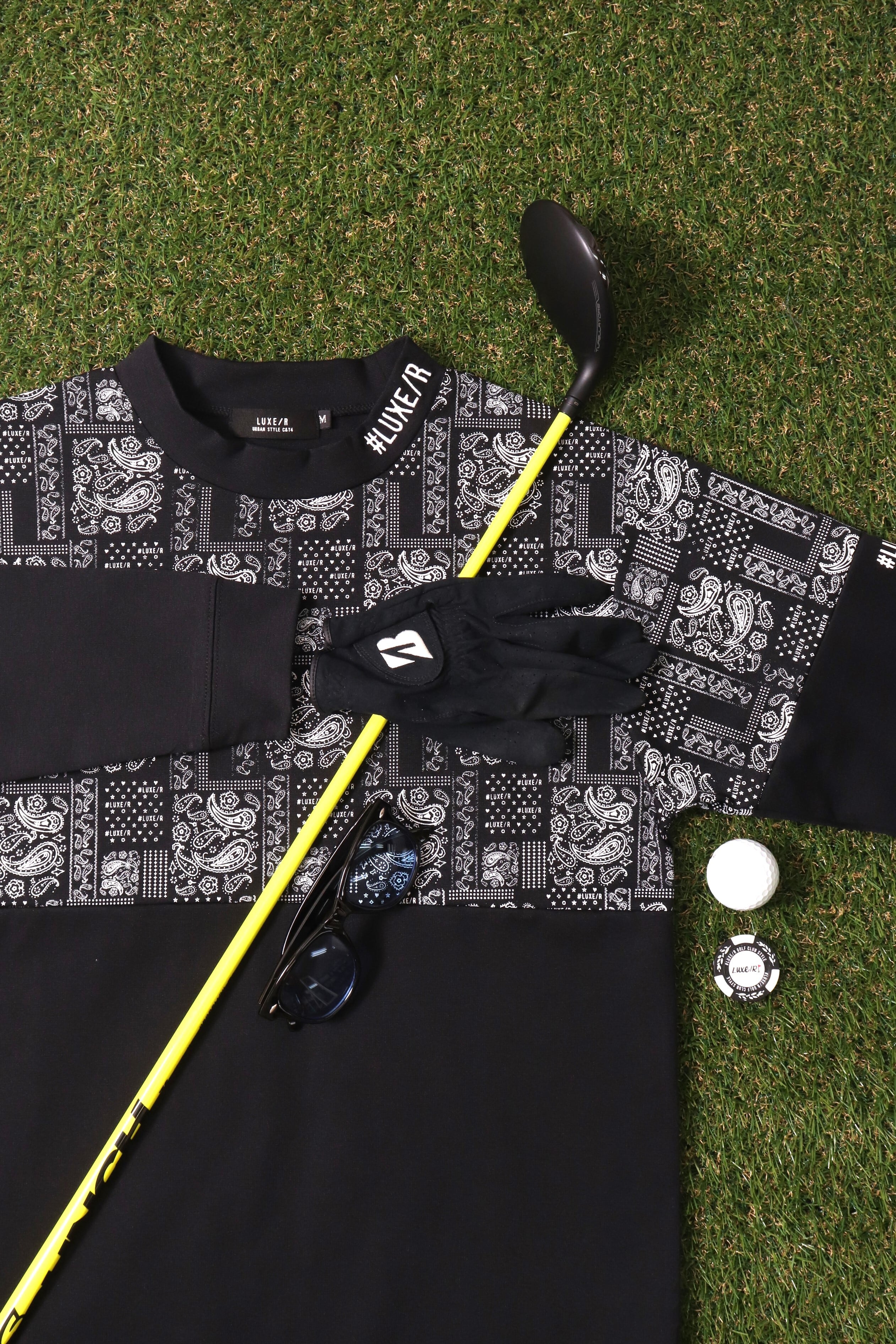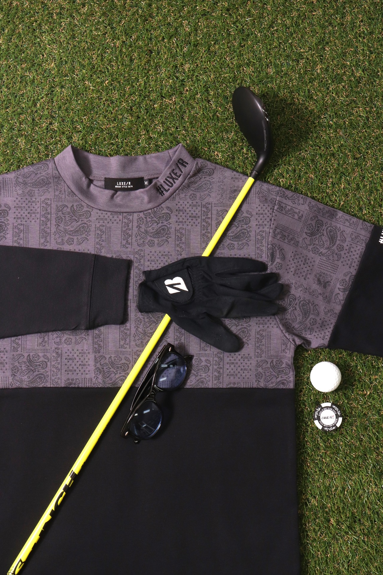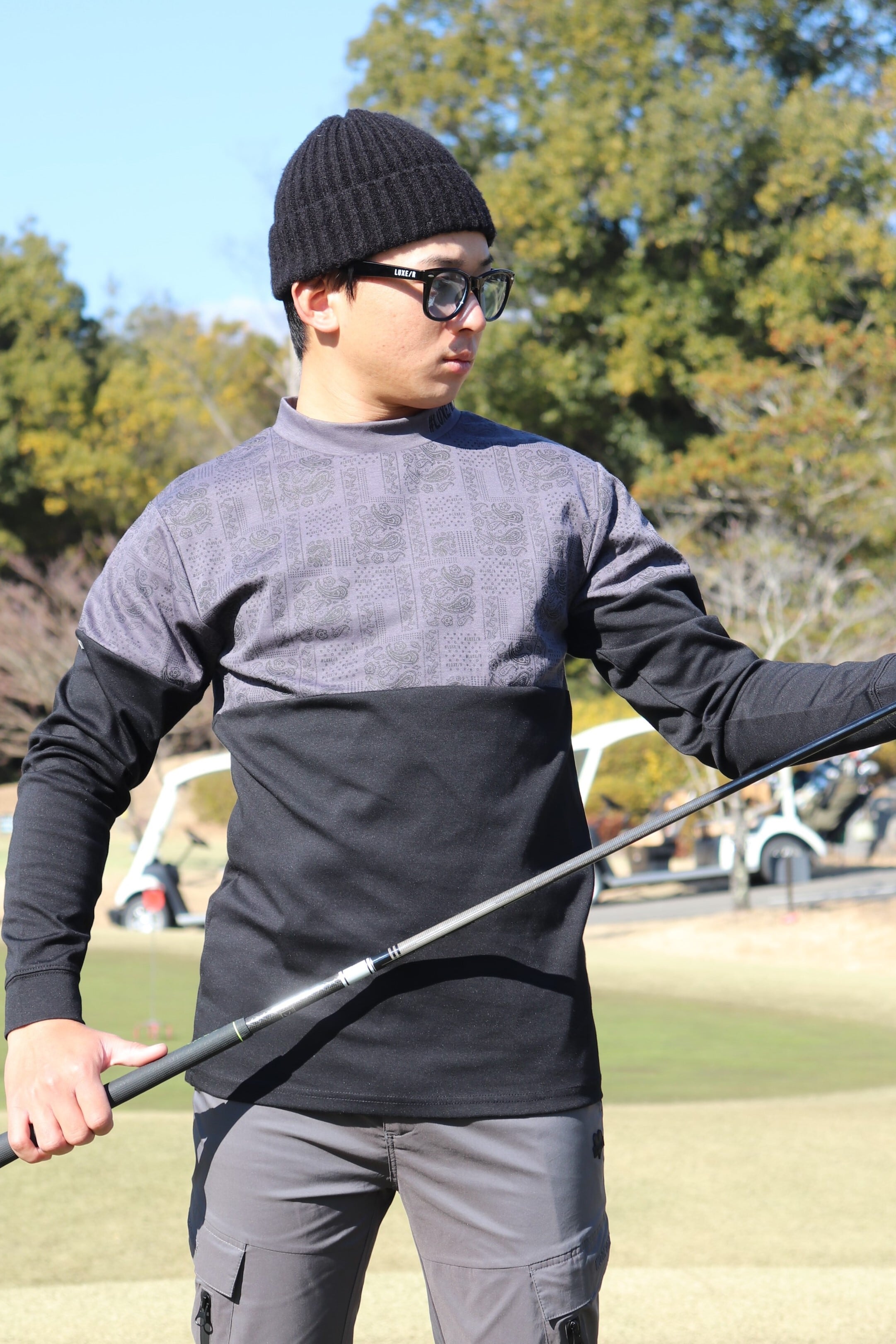 襟はモックネックでGOLFにも着用頂けます。LUXERな素材感にあっさりプリントでセレブ感満載ですね!今流行りのデザインです。