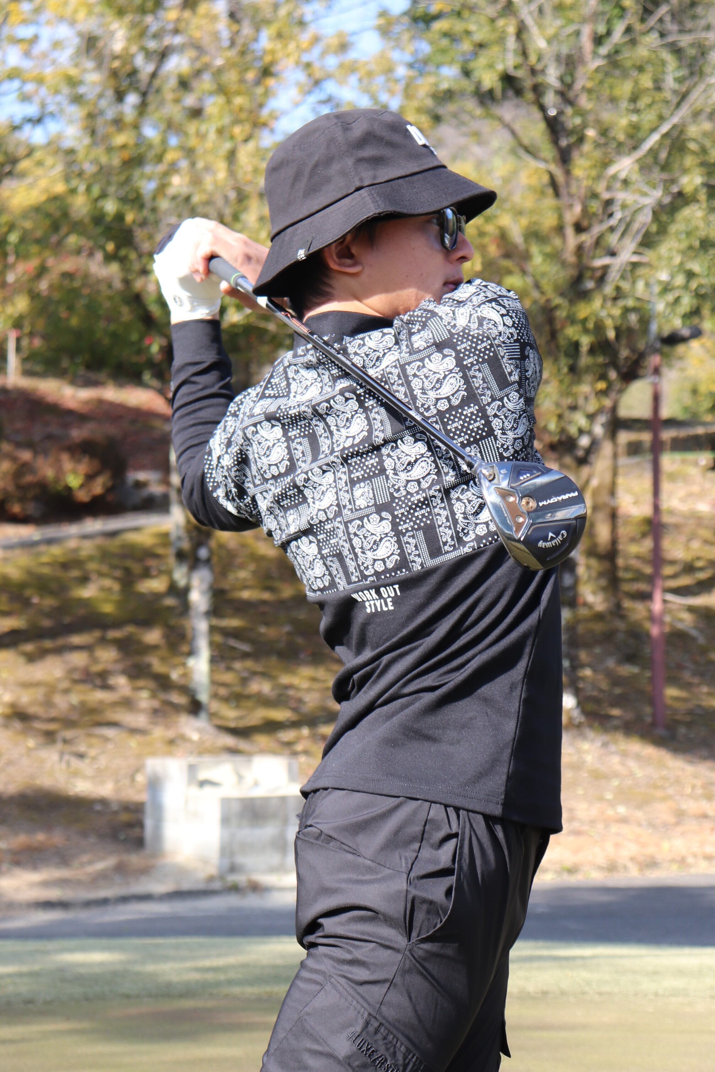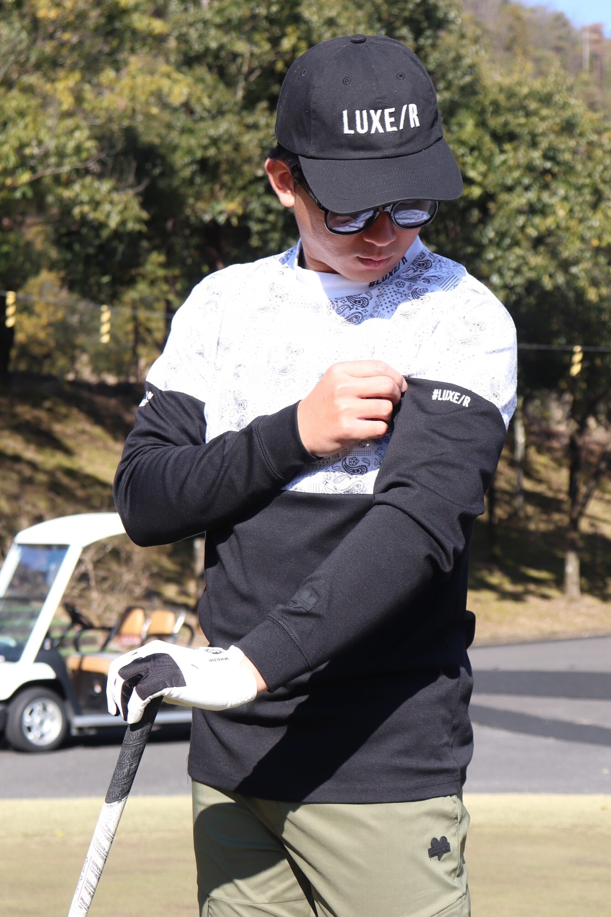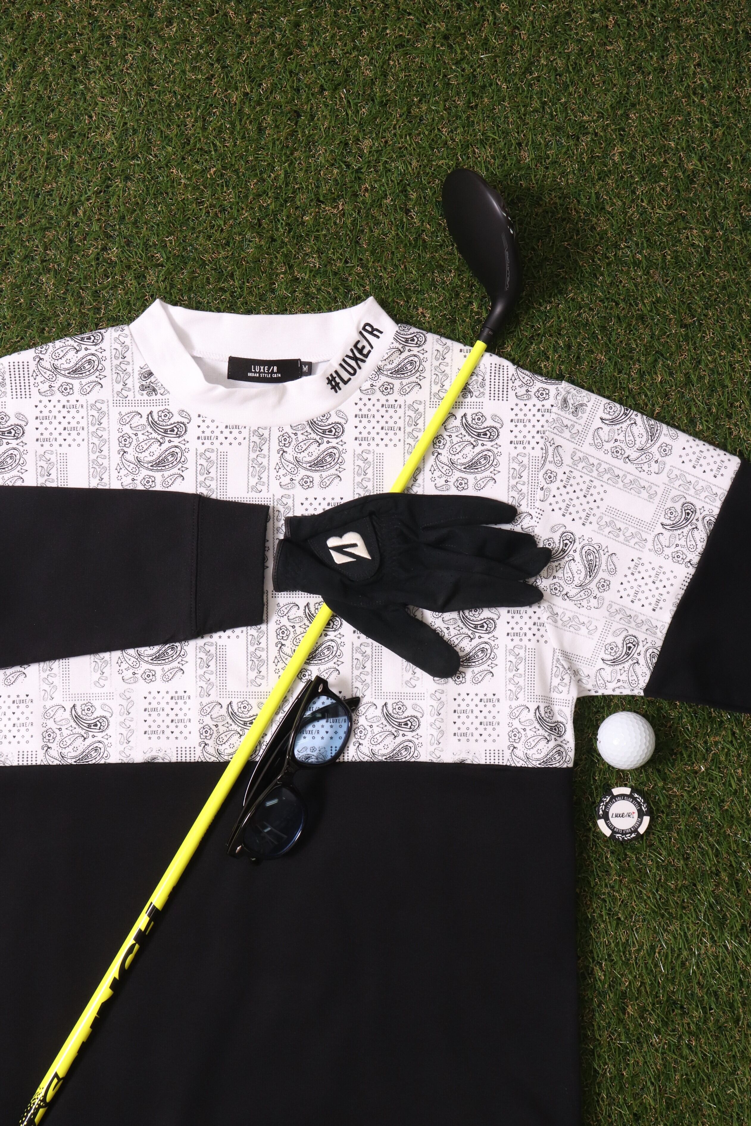 襟はモックネックでGOLFにも着用頂けます。LUXERな素材感にあっさりプリントでセレブ感満載ですね!今流行りのデザインです。