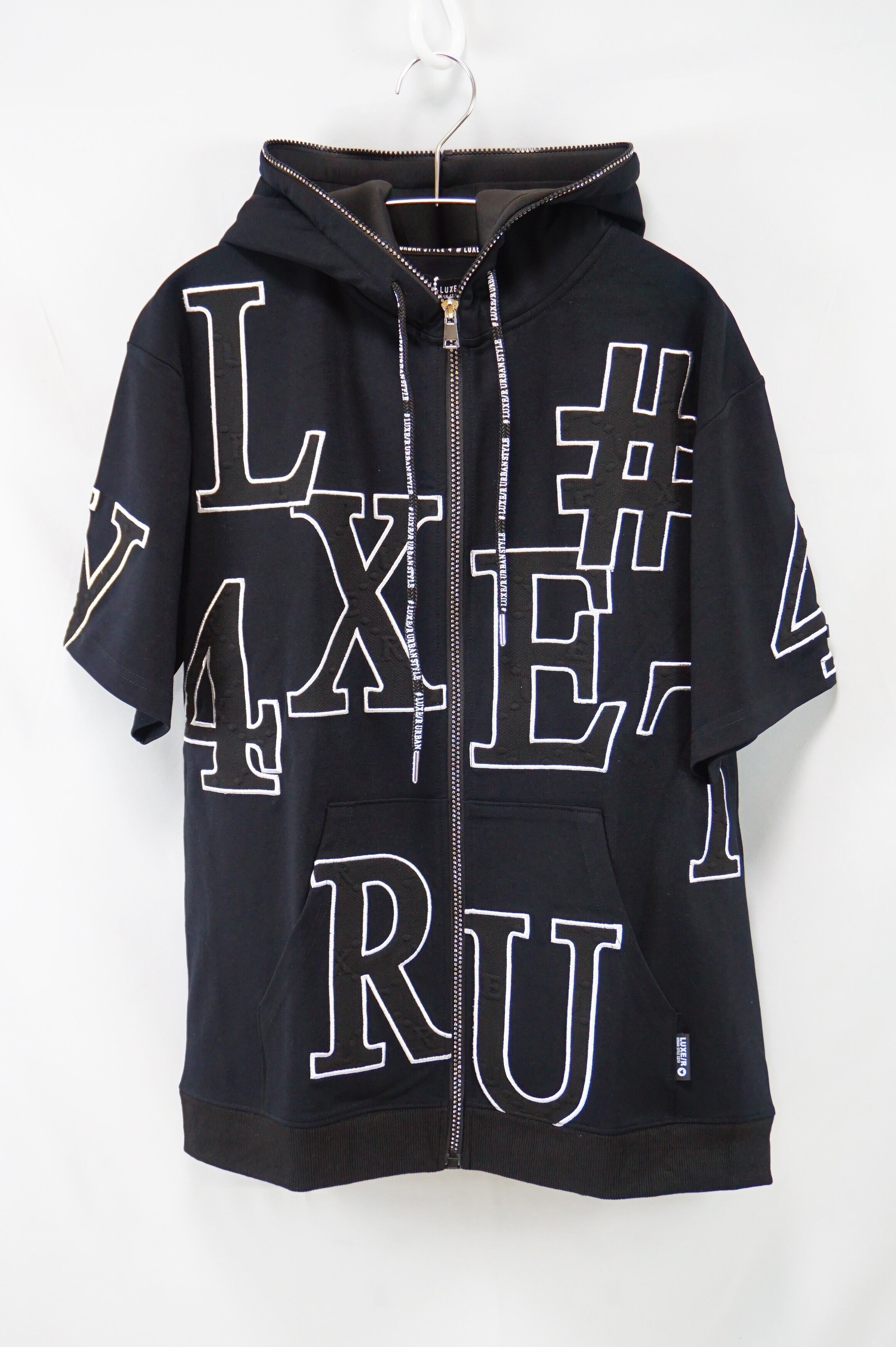 【LUXE/R】45983(ユニセックス商品)ポンチジャージ素材 ZIPパーカー異素材貼り付けロゴサイドリブ