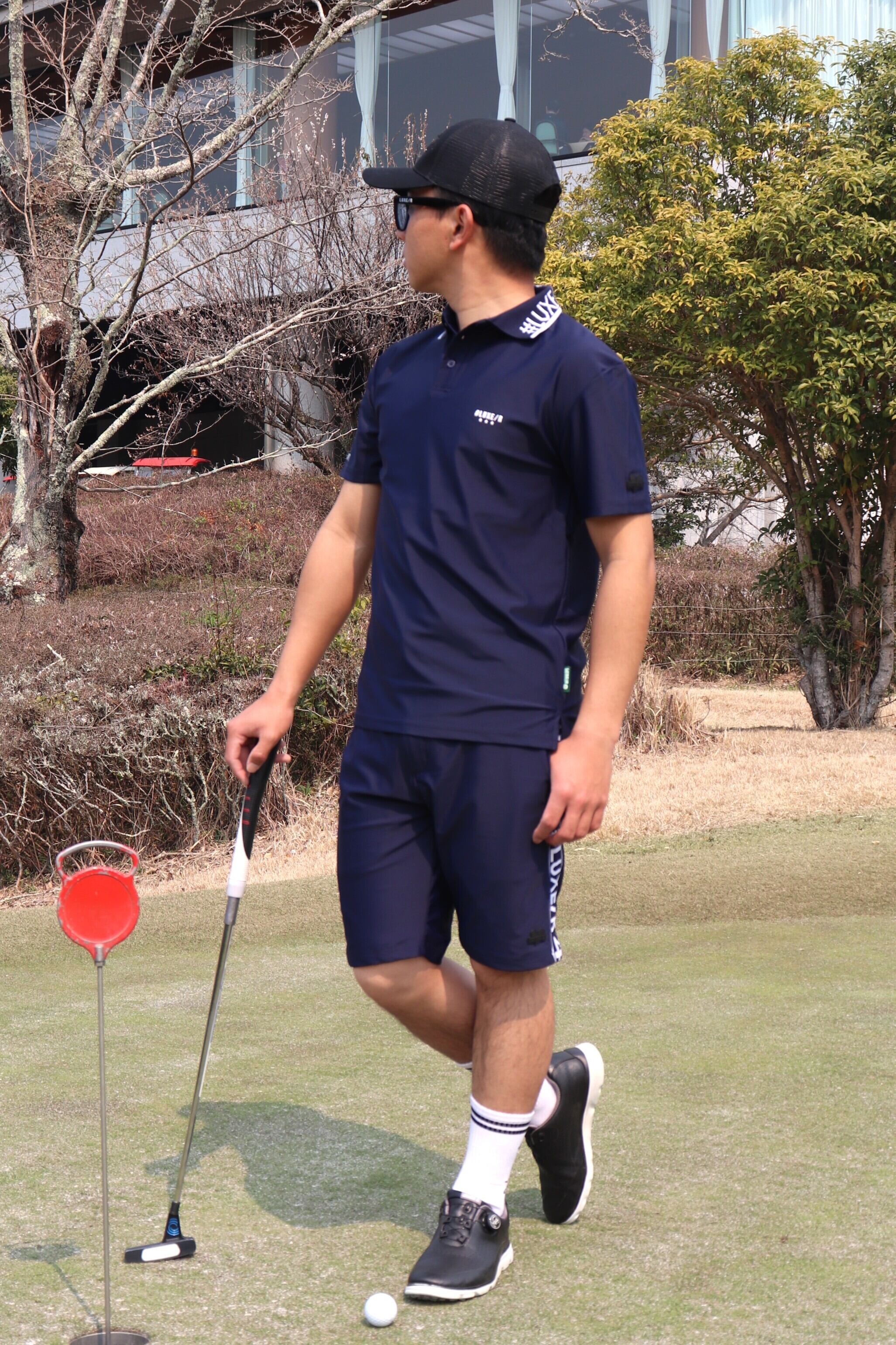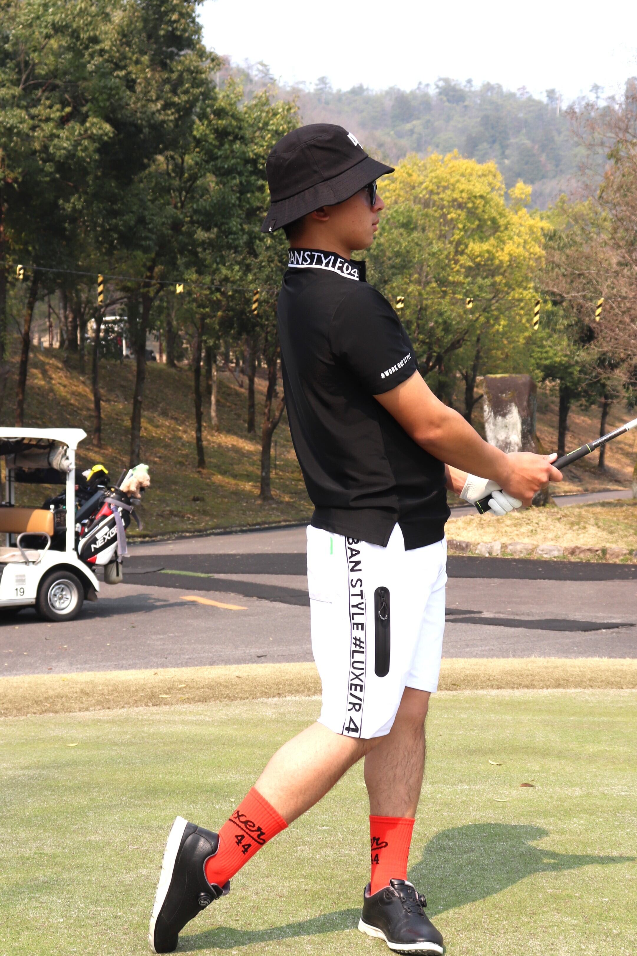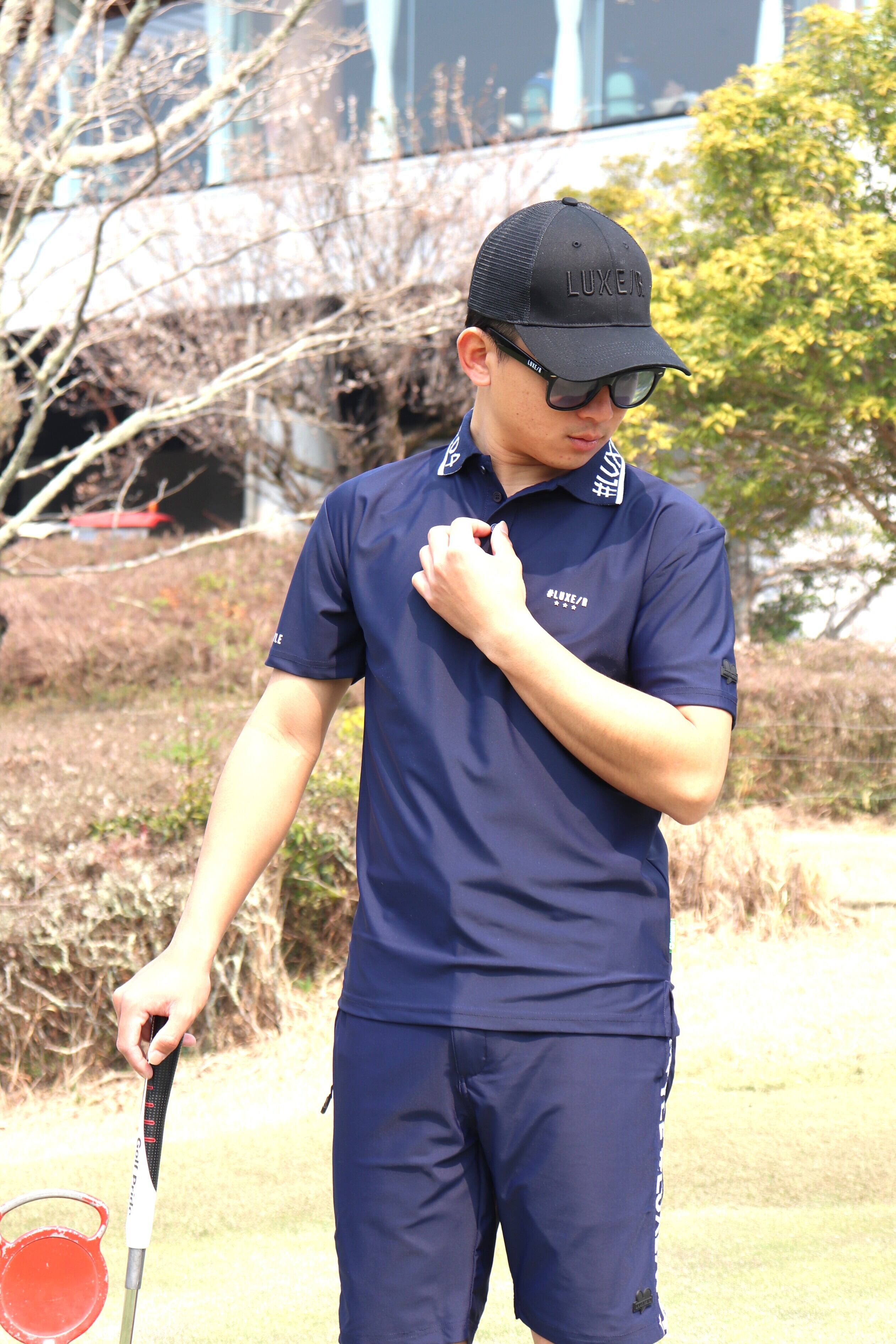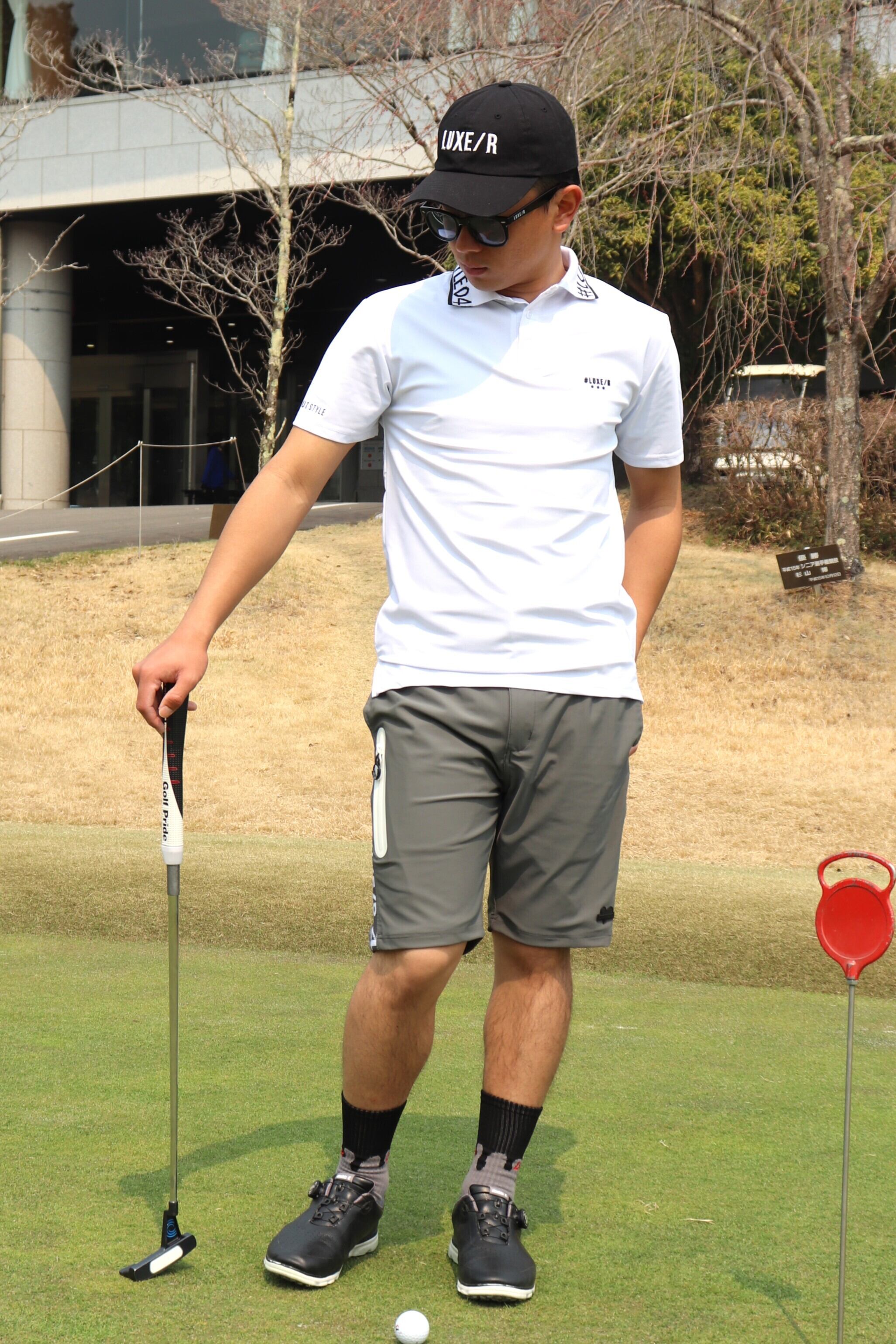 GOLFにも着用頂けます。LUXERな素材感にあっさりバックプリントでセレブ感満載ですね!今流行りのデザインです。